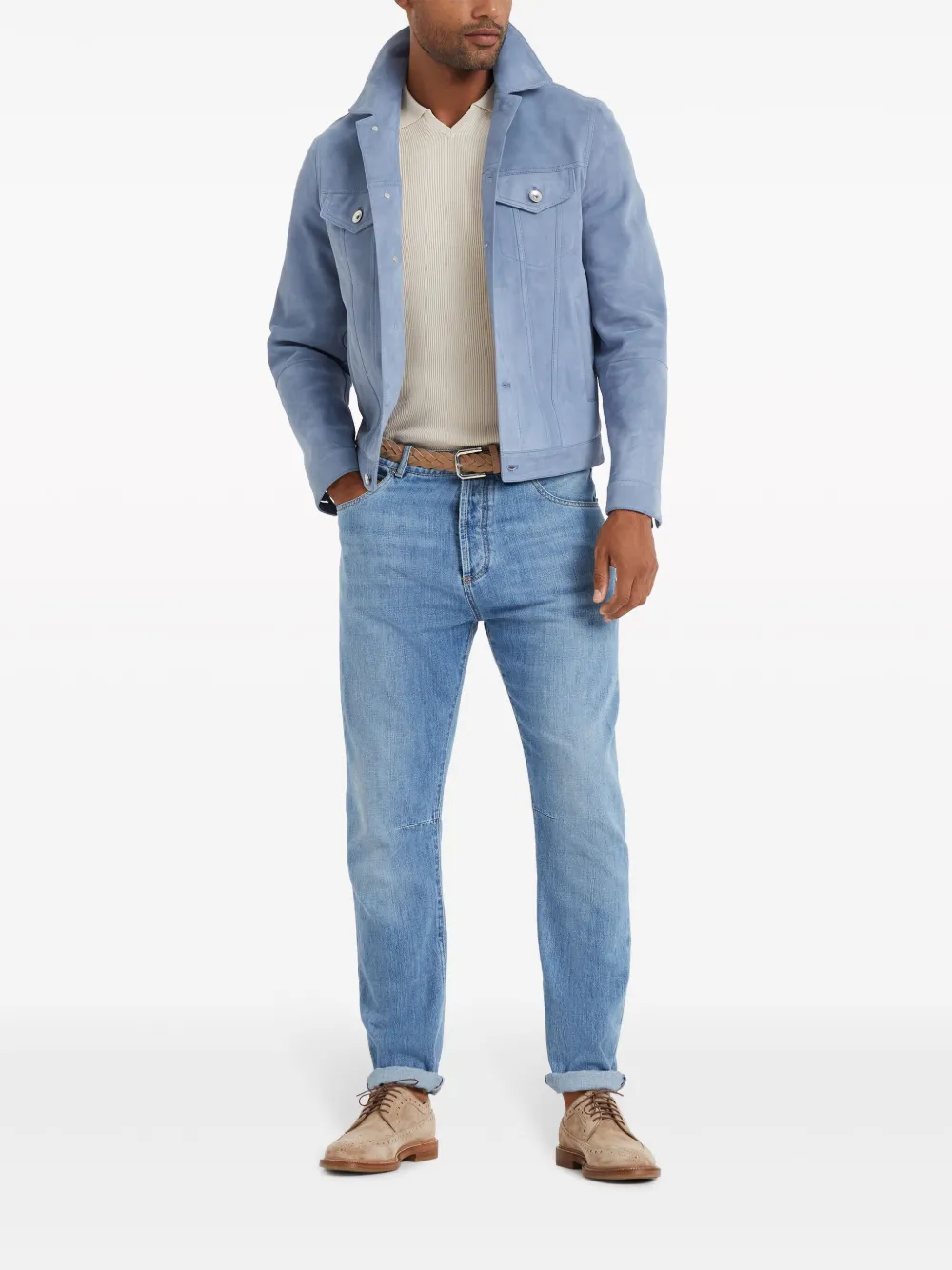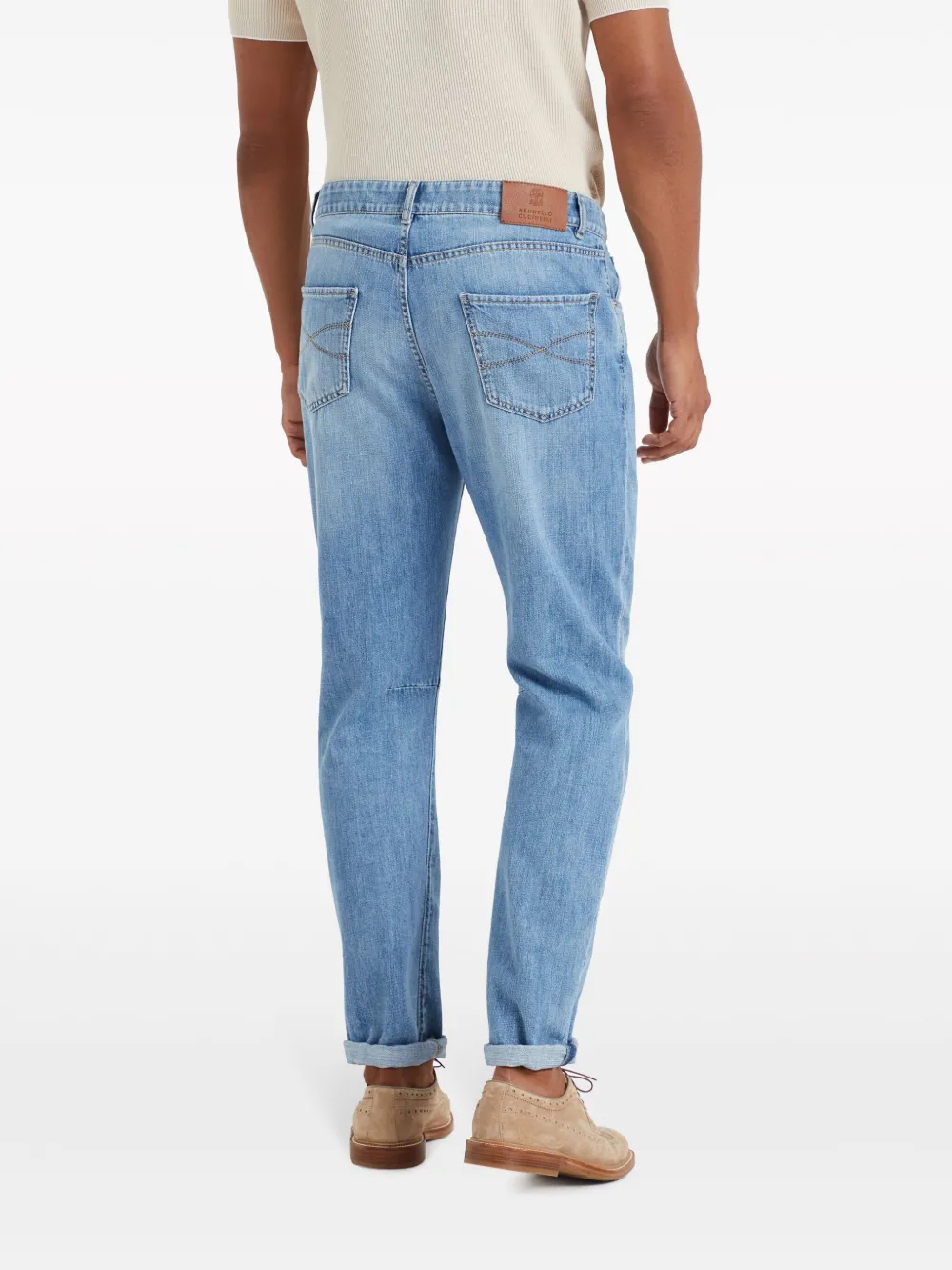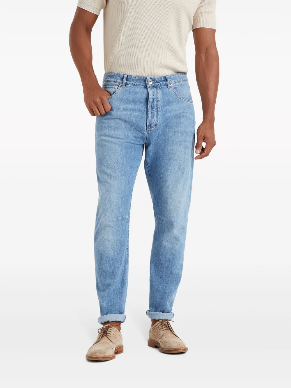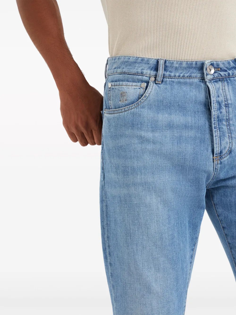 Джинсы прямого кроя с эффектом потертости Brunello Cucinelli, синий