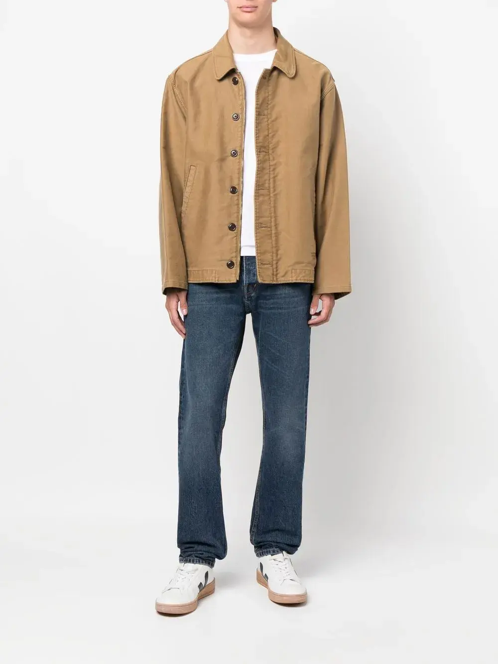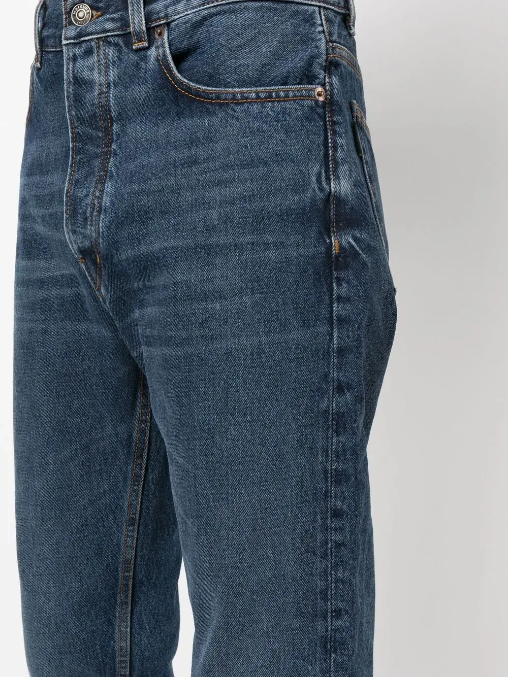 Синий, хлопок, эффект потертости, декоративные складки на бедрах, петли для ремня, ширинка на молнии и прямой крой. Этот бренд получил хорошую оценку, потому что следит за соблюдением достойных условий труда на всех этапах цепочки поставок.