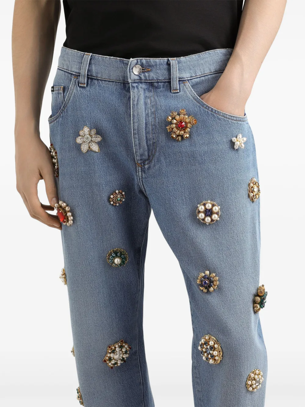 Прямые джинсы с кристаллами DOLCE & GABBANA, синий