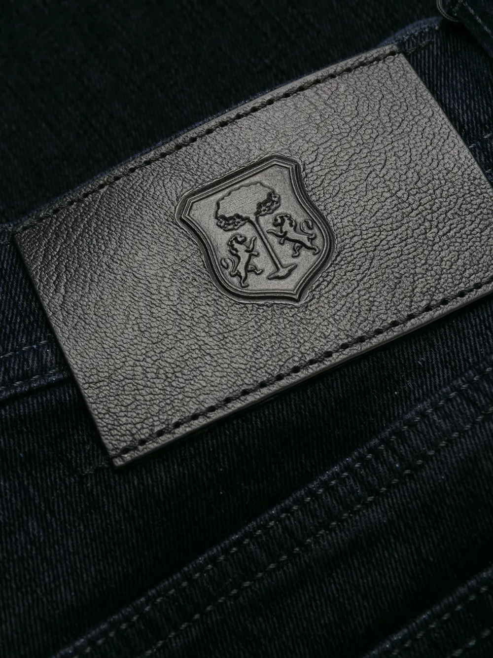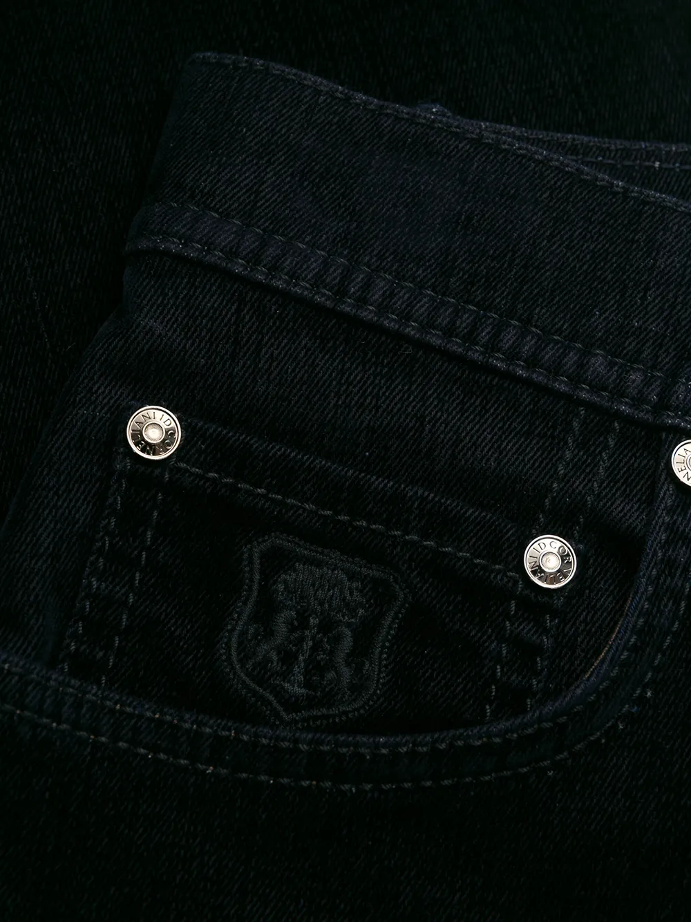 Джинсы прямого кроя от Corneliani. Ширинка на молнии с пуговицей, вышитый логотип спереди, пояс с петлями для ремня, вставка с логотипом сзади и классическая пятикарманная модель. Цвет: черный.