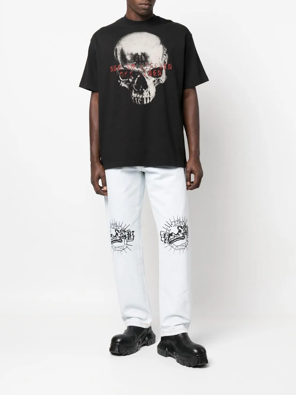 Прямые джинсы с графичным принтом 44 LABEL GROUP, синий 43 875₽