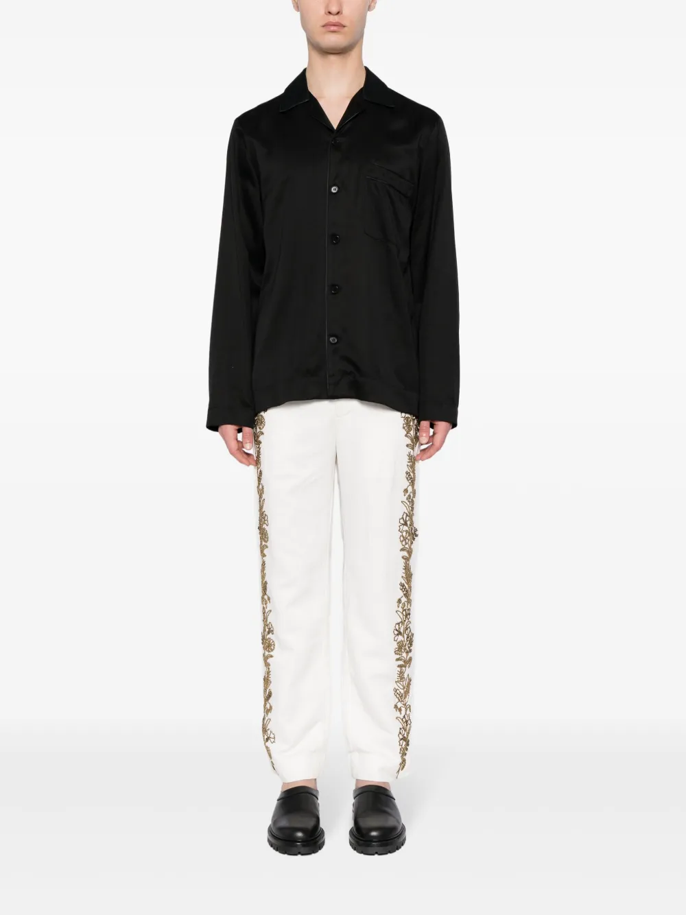 Белый, смесь хлопка и льна, декор из бисера, потайная застежка на молнии и пуговицах, прямой крой, два вшитых кармана по бокам, два кармана с клапанами сзади и прямой подол. . Узнать больше о том, какие товары получают отметку «Ответственный выбор», можно из материала «Как мы оцениваем экологичность и этичность».