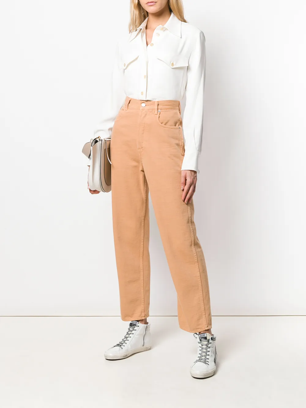 Прямые брюки от Golden Goose Deluxe Brand (Голден Гус). Пояс с петлями для ремня, ширинка на молнии с пуговицей, классическая пятикарманная модель и прямой крой.