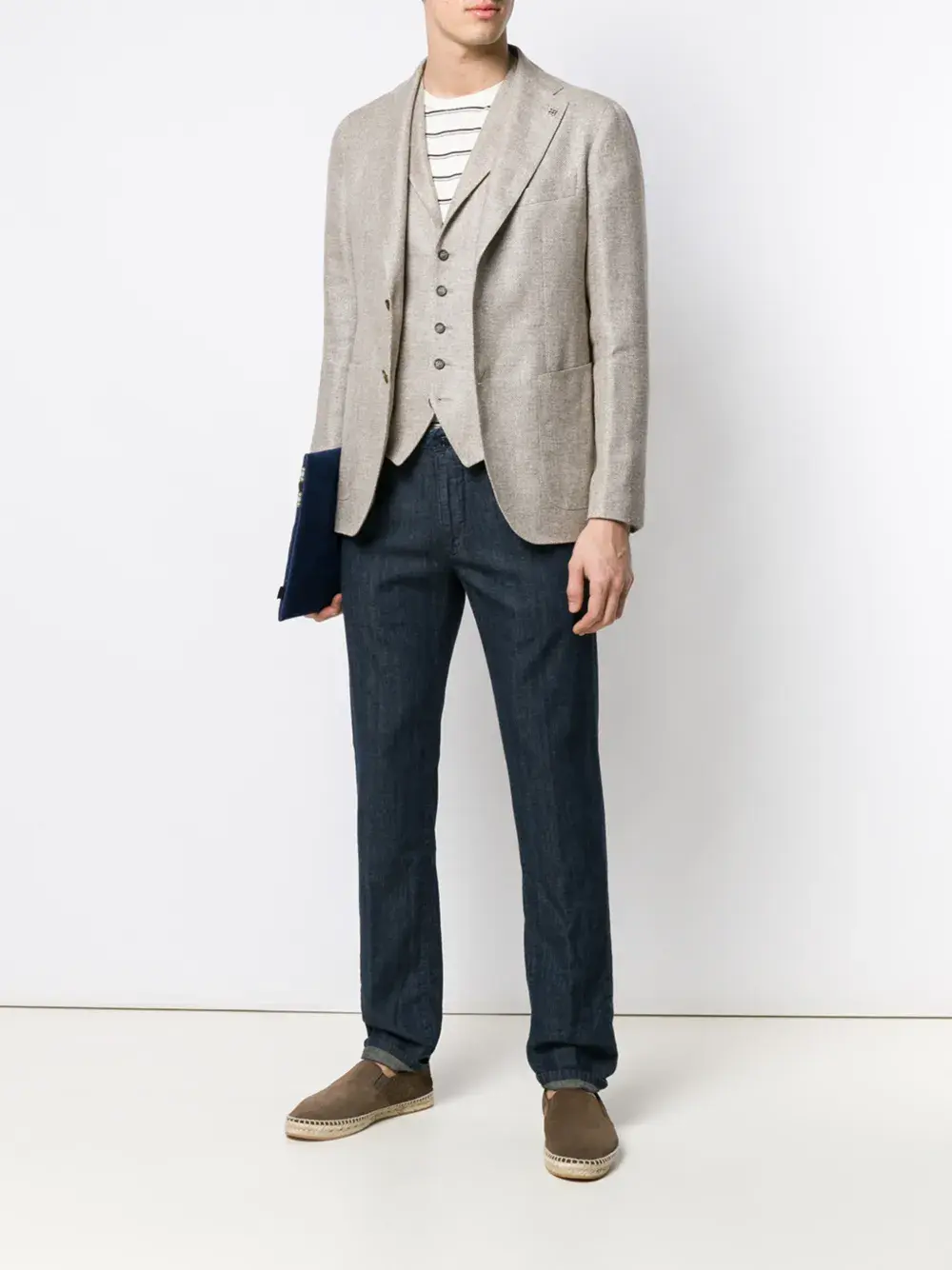 Прямые брюки от Incotex. Застежка на пуговицах спереди, петли для ремня, задние карманы и стандартная длина. Цвет: синий.