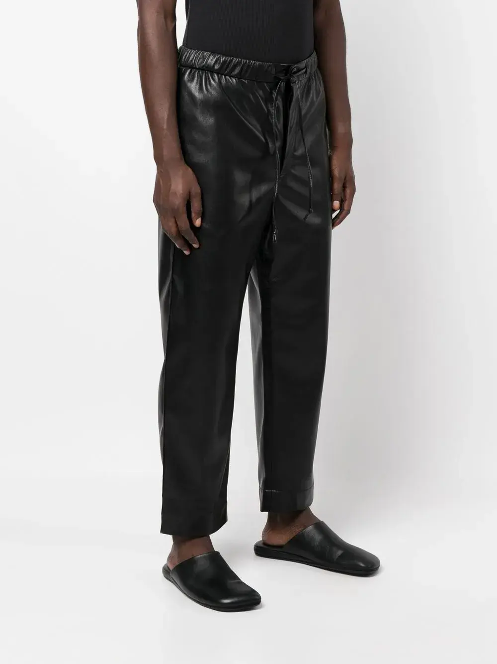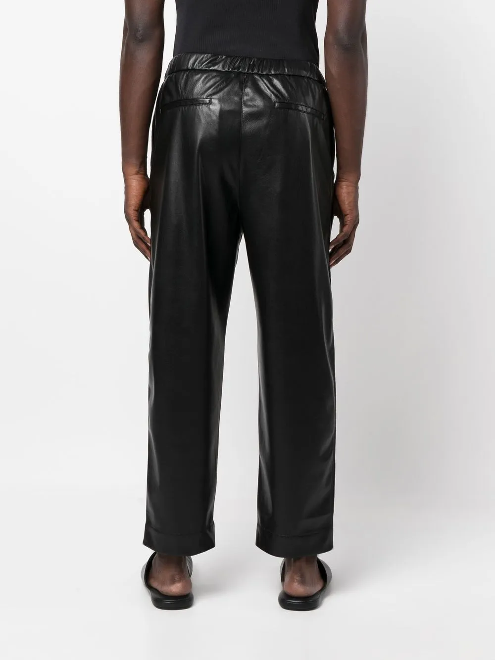 Черный, смесовый переработанный полиэстер, кулиска на талии, застежка на молнии и пуговице спереди, прорезные карманы по бокам, два кармана с листочкой сзади и прямой крой.