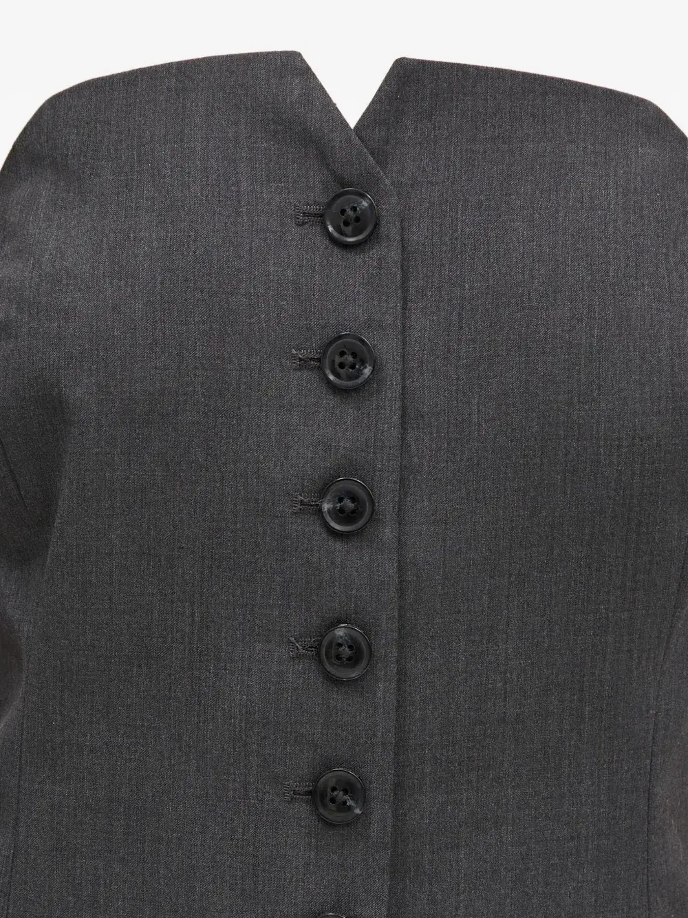 Юбка А-силуэта темно-серого цвета без бретелек, застежка на пуговицы спереди