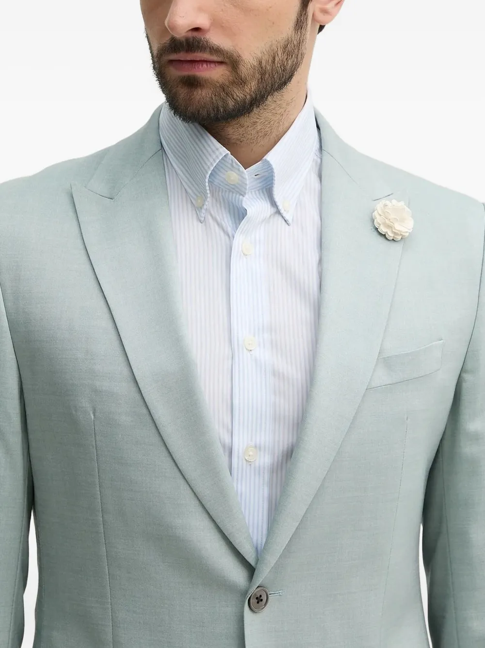 Булавка с цветком из бледно-зеленой эластичной шерсти, застежка на две пуговицы, внутренний брендинг