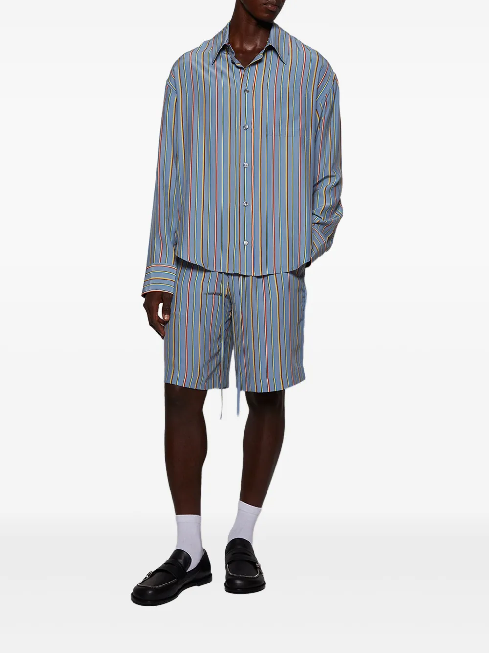 Полосатые шелковые шорты The Elder Statesman, синий