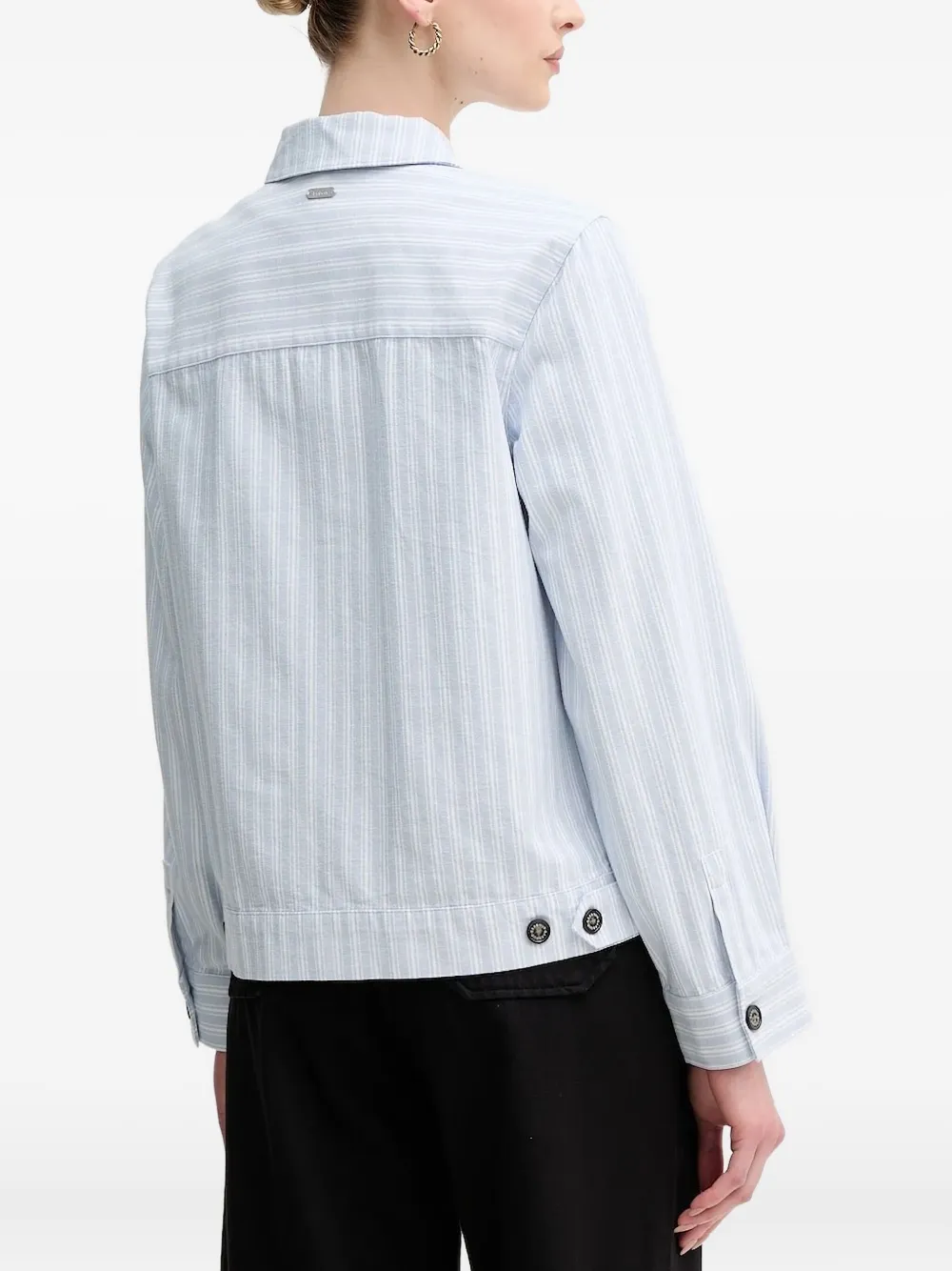 Застежка на пуговицы в полоску голубого цвета, отложной воротник, нагрудный карман, логотип, декорированные пуговицы