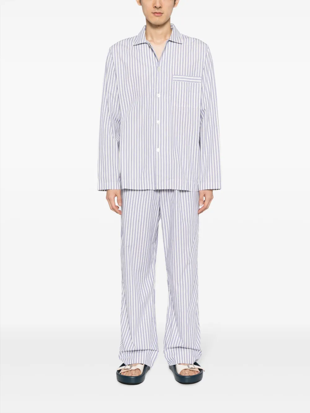 Полосатая хлопковая пижамная рубашка TEKLA, белый