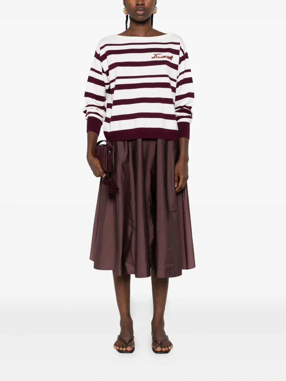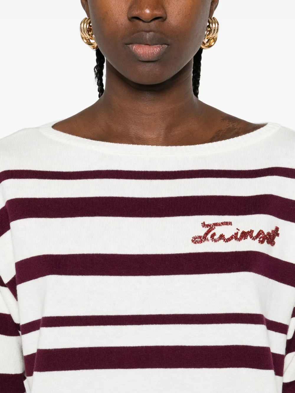 Полосатый свитер с декорированным логотипом TWINSET, белый