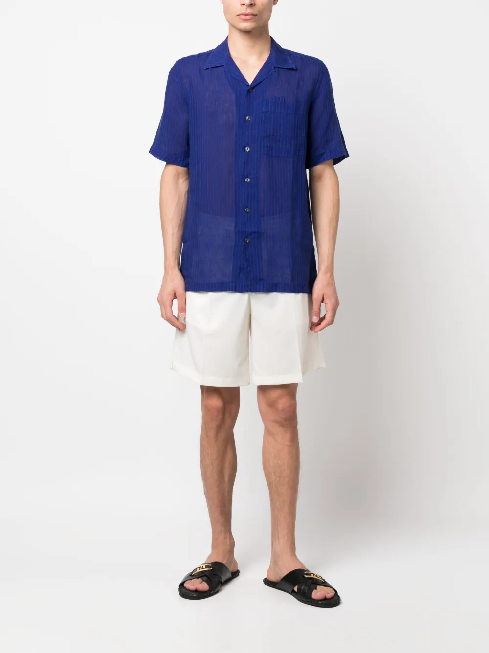 Льняная рубашка в полоску 120% Lino, синий
