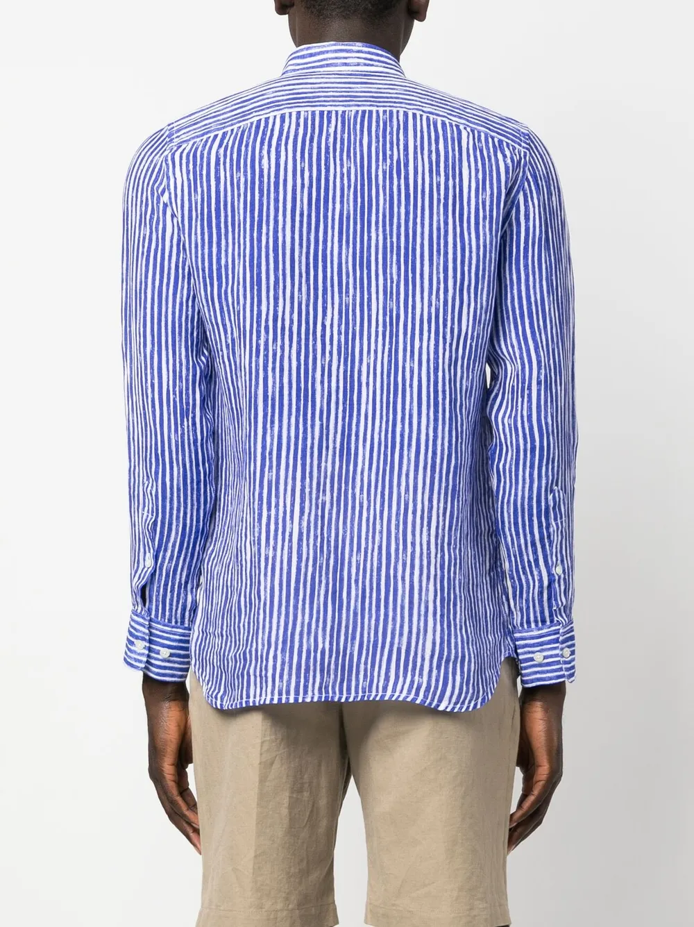 Льняная рубашка в полоску 120% Lino, синий 15 500₽
