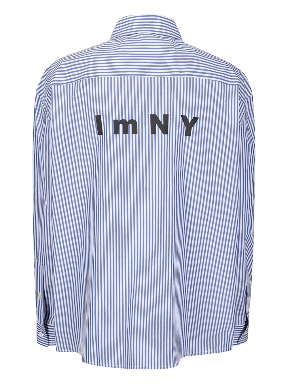 Синий хлопковый полосатый узор, застежка на пуговицы, длинные рукава, накладной карман с надписью ImNY.