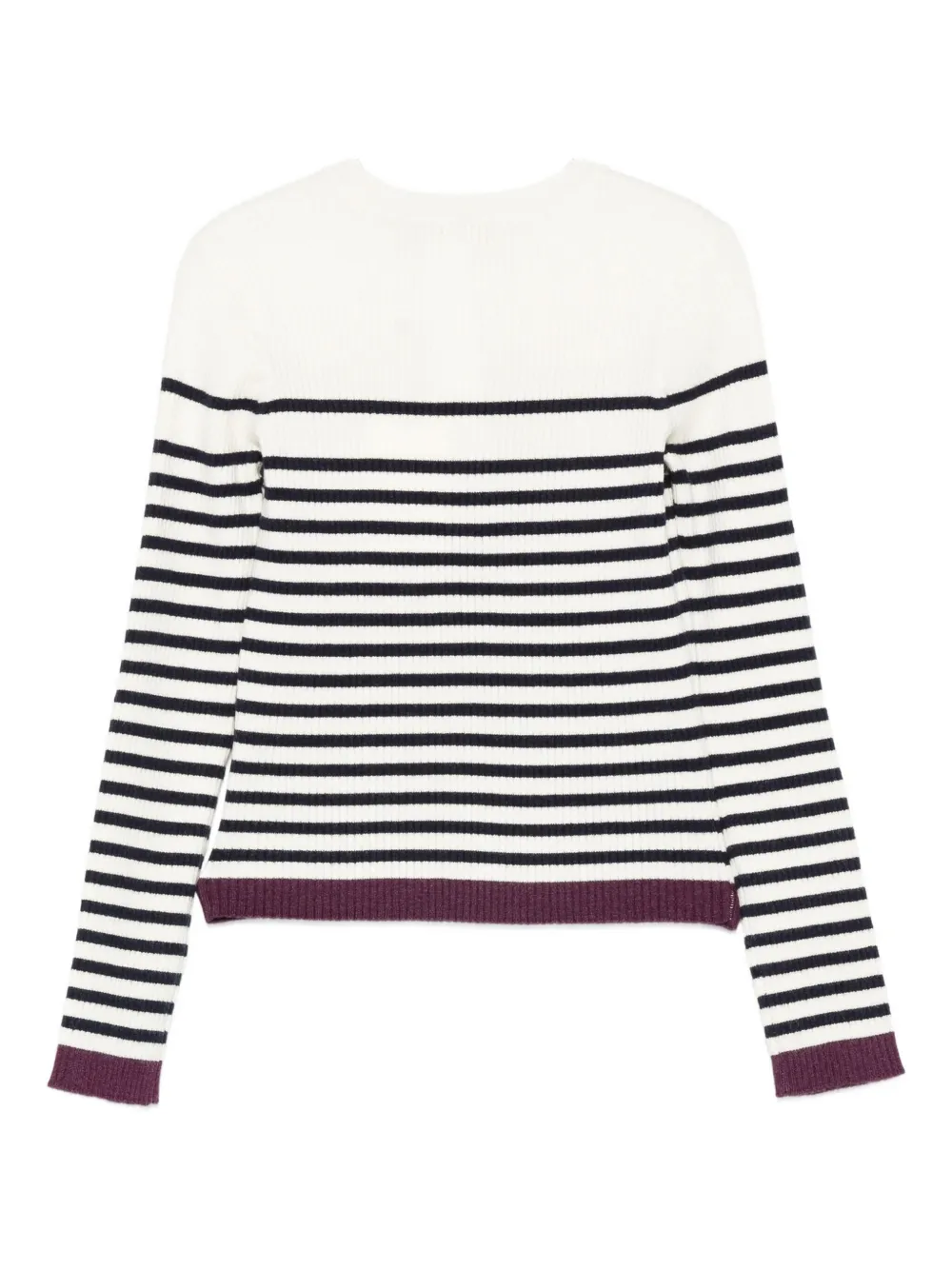 Белый, темно-синий, полосатый, ребристая вязка, длинные рукава, вышитый логотип