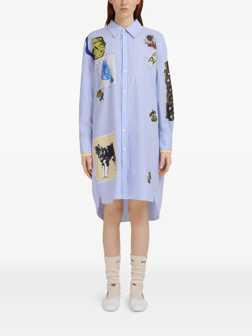 Полосатое платье-рубашка с нашивками Marni, синий 157 191₽