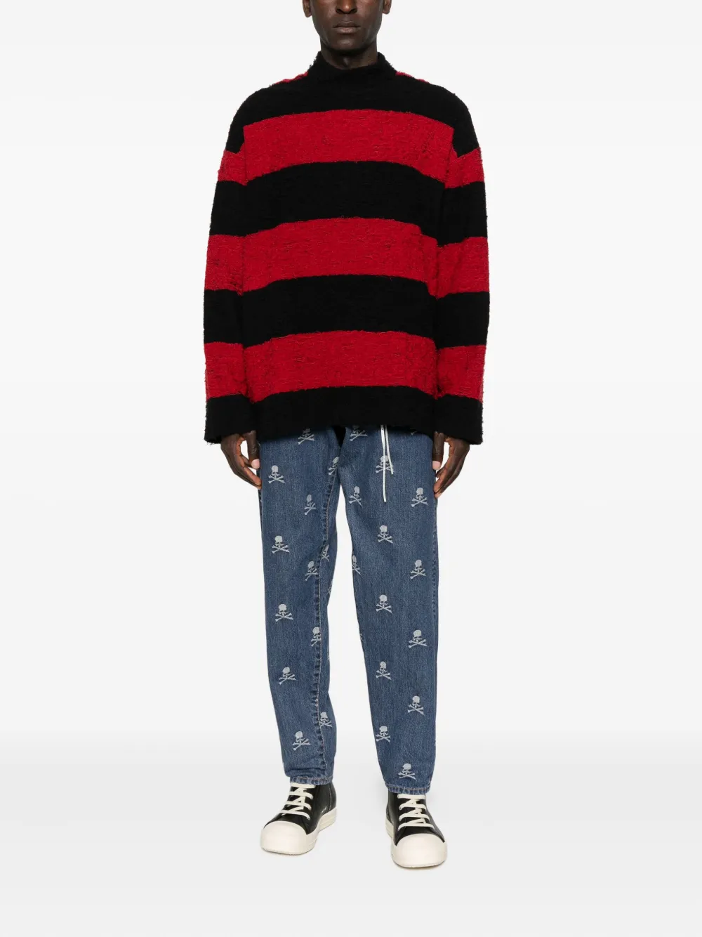 Красно-черные полосы, потертый узор, воротник-стойка, длинные рукава