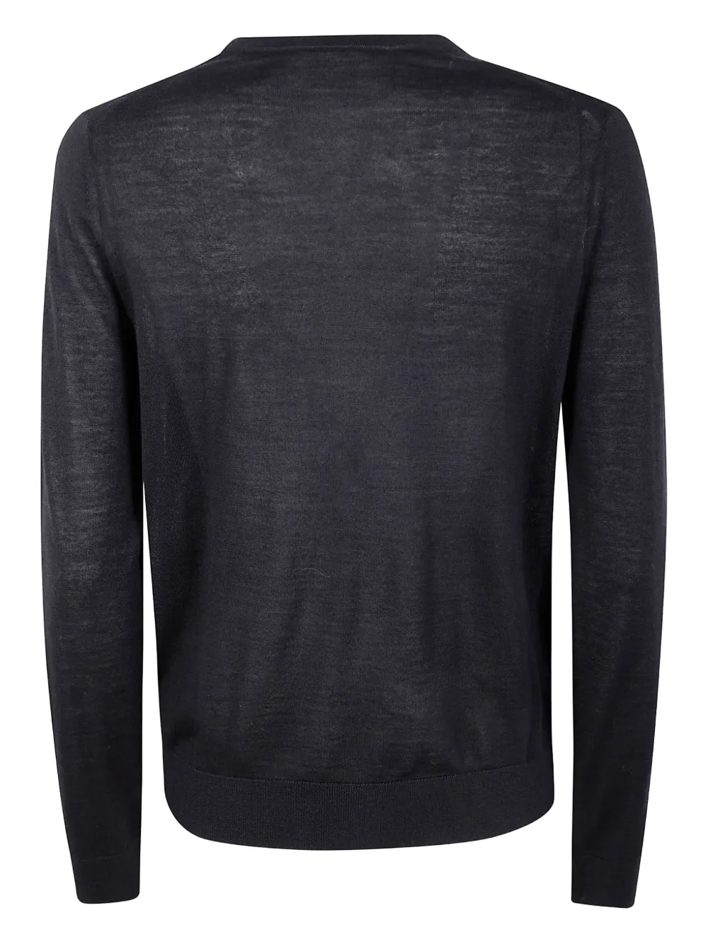 Черная шерсть, длинные рукава, застежка на пуговицы, круглый вырез.