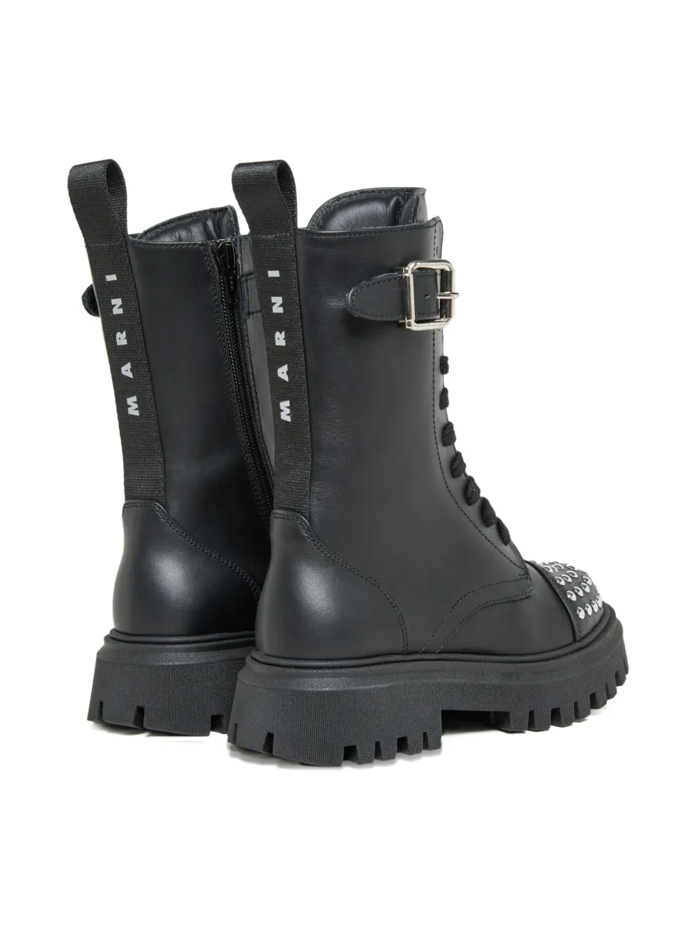 Кожаные ботинки с заклепками Marni Kids, черный 28 282₽