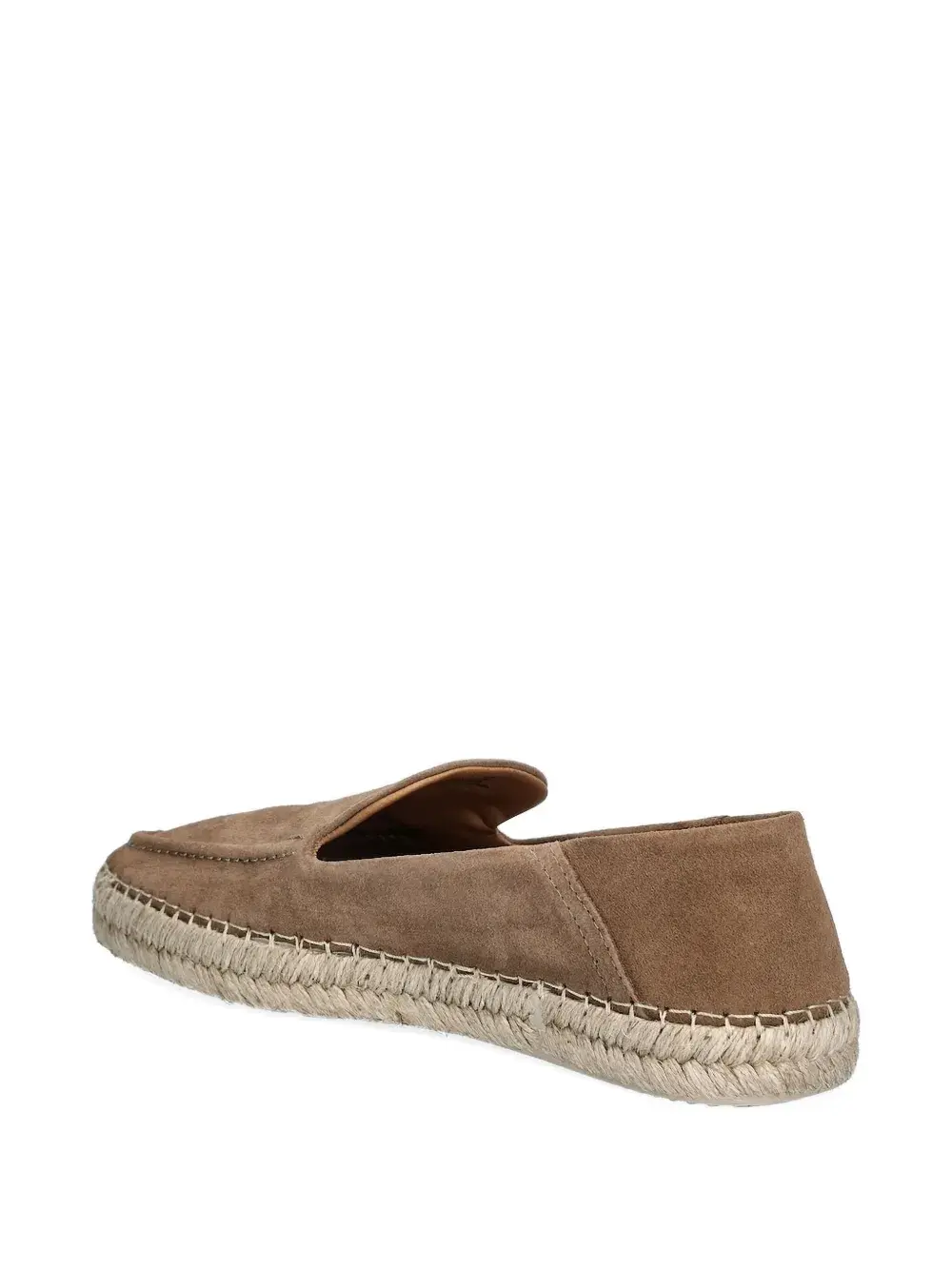 Верх из светло-коричневой замши, джутовая подошва, декоративная строчка.