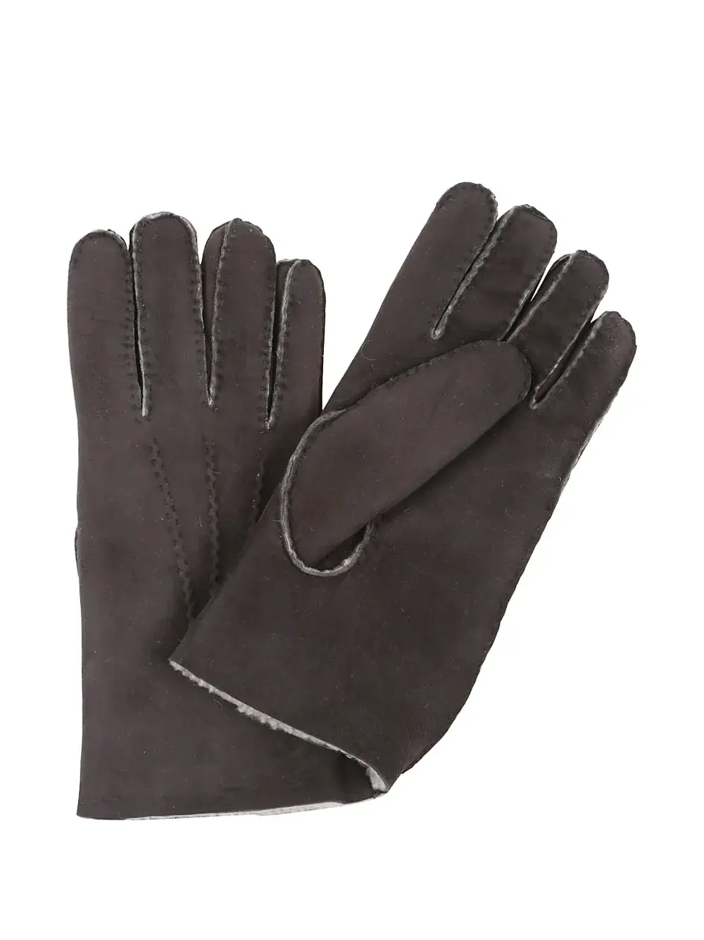 Темно-коричневая замшевая овчина с отделкой, декорированная пятипальцевым узором