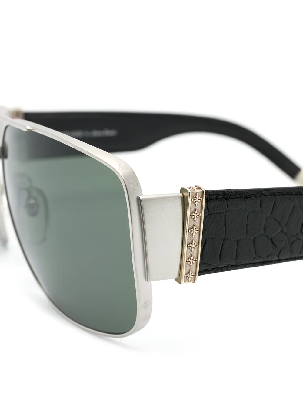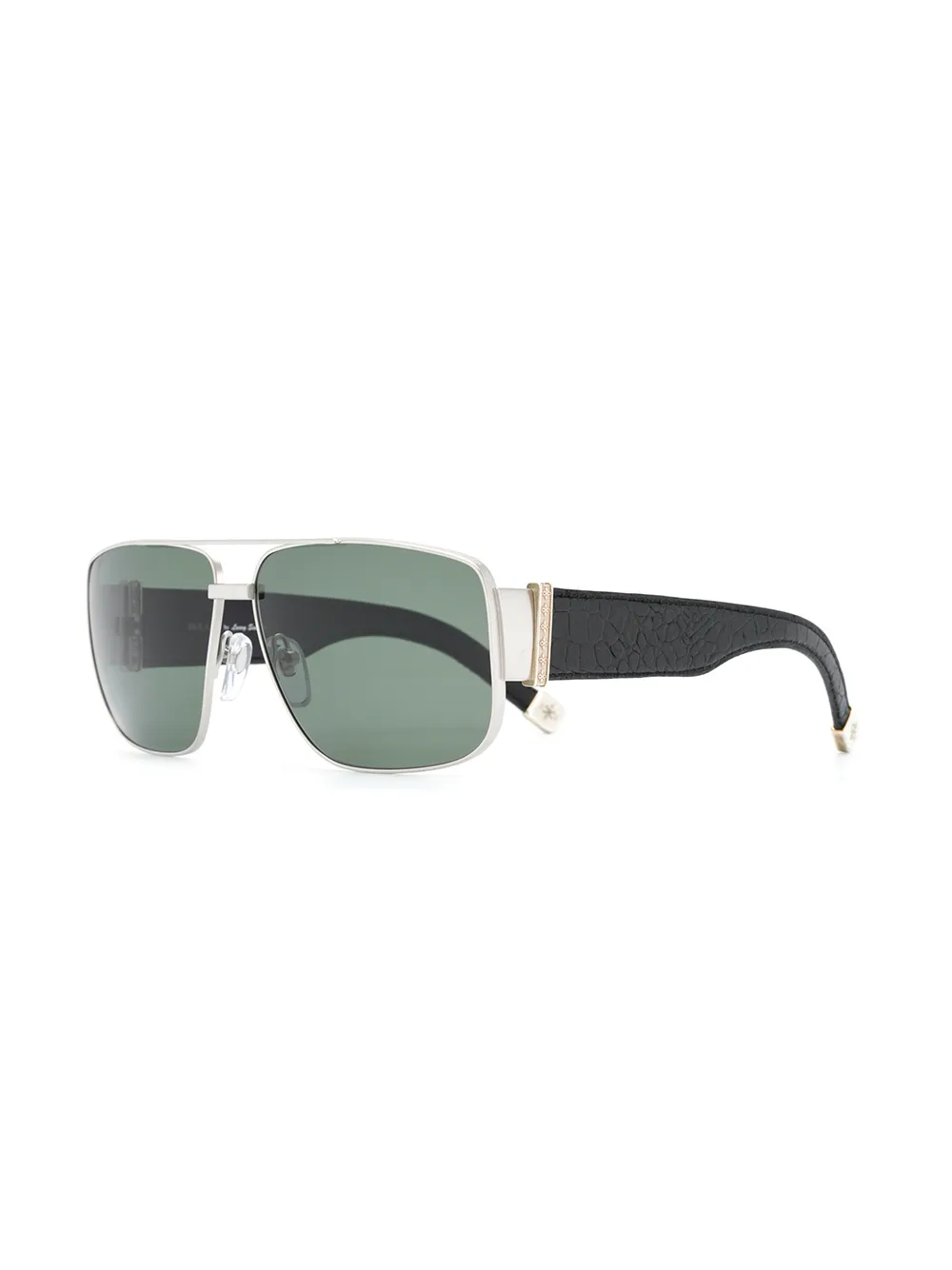 Солнцезащитные очки 'Furl' от PARADIS COLLECTION. Затемненные линзы, прямые дужки с изогнутыми концами и серебристая фурнитура. Цвет: зеленый. Прилагается защитный чехол.