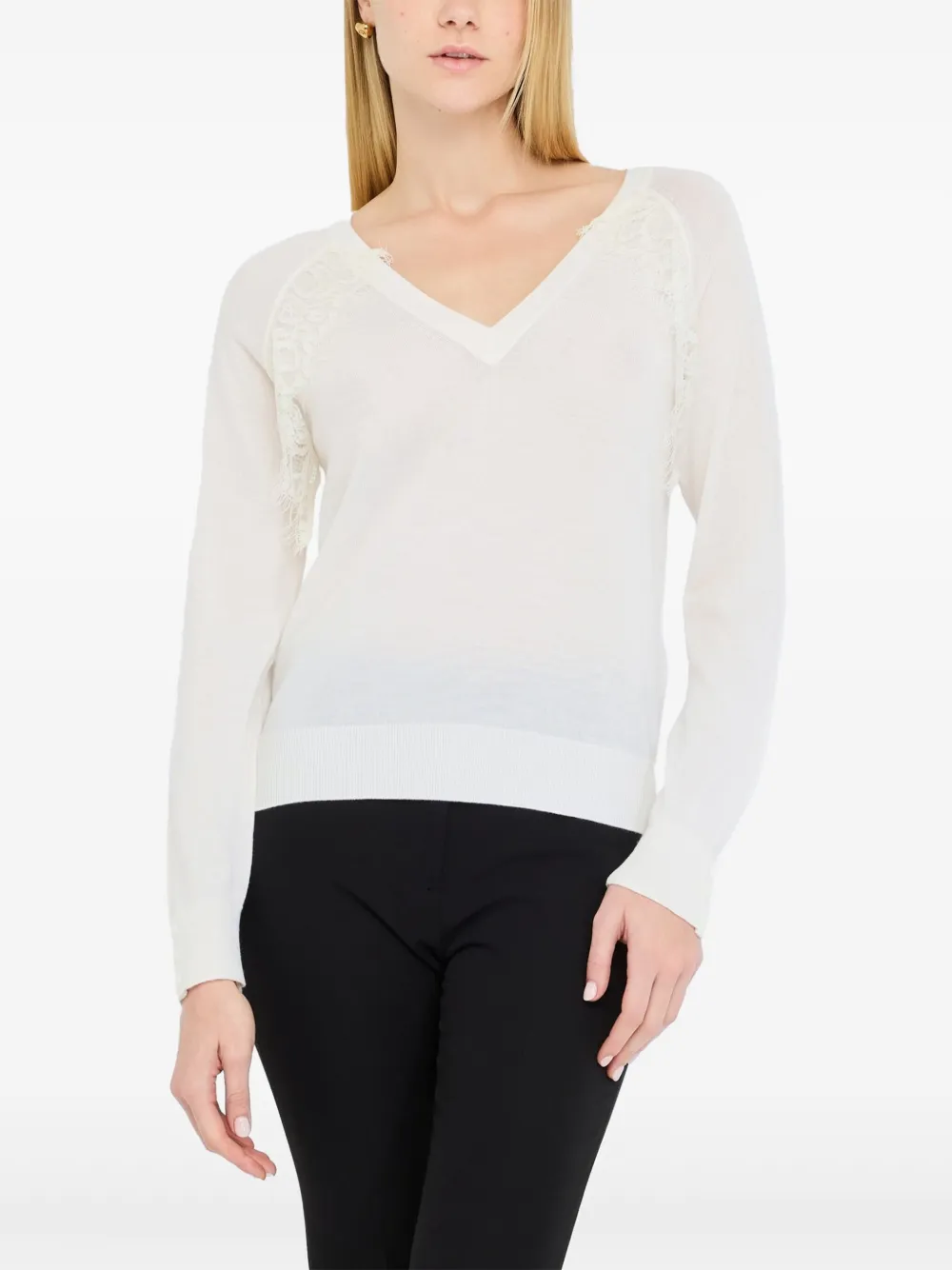 Свитер с рукавами реглан и кружевом LIU JO, белый