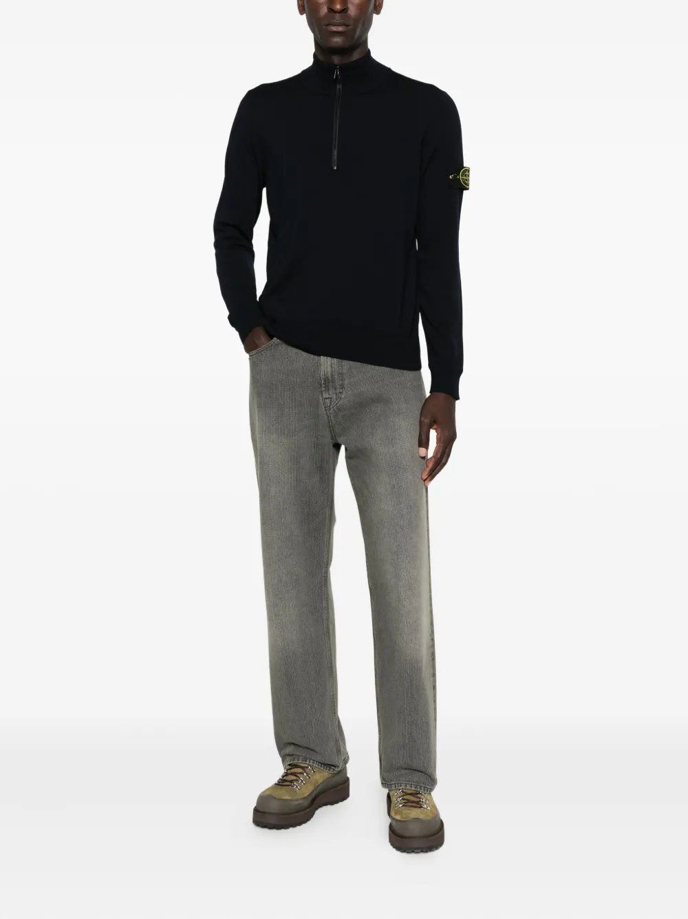 Свитер с воротником на молнии и логотипом Stone Island, синий