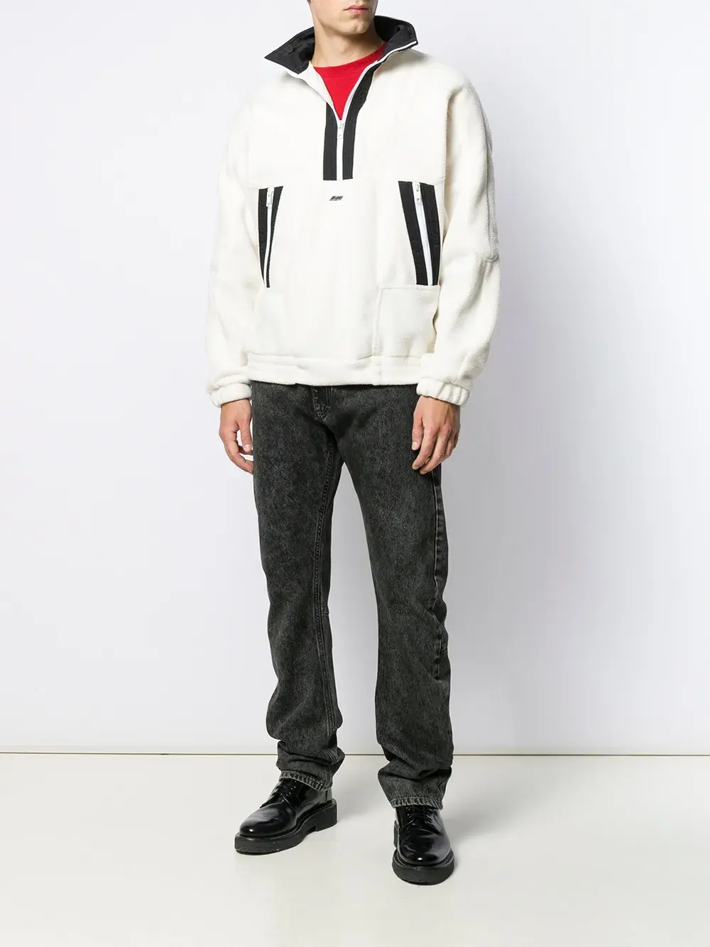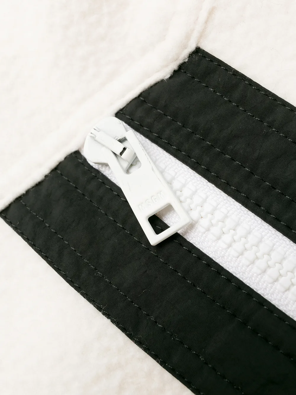 Толстовка с контрастными полосками от MSGM. Косой воротник, застежка на молнии спереди, длинные рукава, карманы на молнии сбоку и подол на шнурке.
