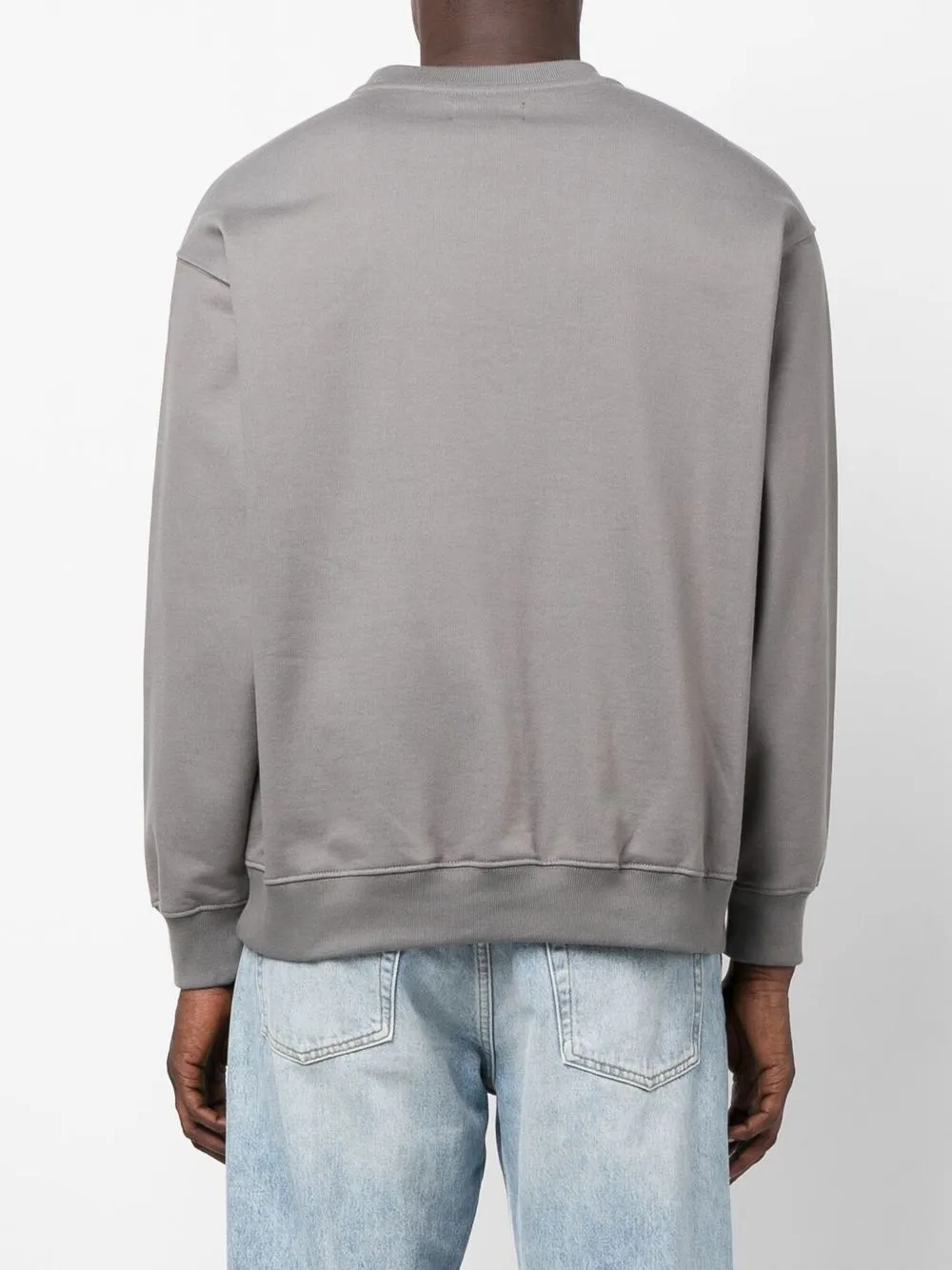 Светло-серый, хлопок, детали в рубчик, логотип спереди, круглый вырез, длинные рукава и прямой подол.