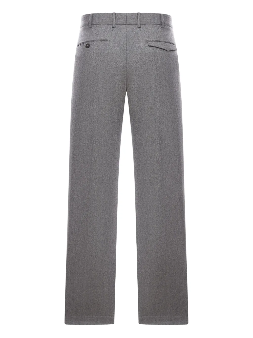 Серые прямые брюки, застежка на пуговицы, прорезные карманы, прямой подол.
