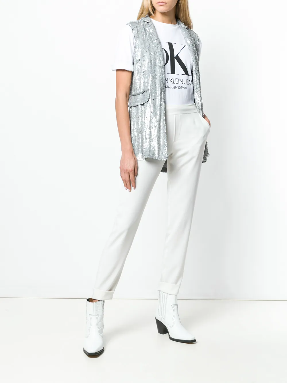 Зауженные брюки от P.A.R.O.S.H.. Завышенная посадка, эластичный пояс, сужающиеся к низу брючины, узкий крой и обрезанная длина. Цвет: белый.