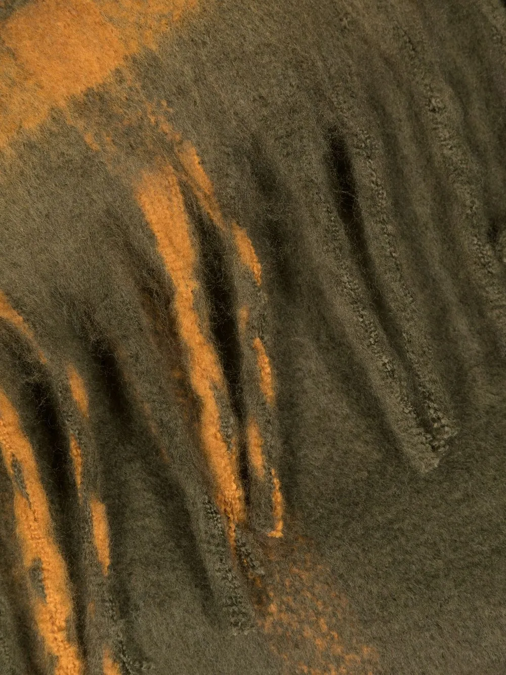 Коричневый, темно-зеленый, темно-синий, трикотажный материал, узор в клетку тартан, края с бахромой и несколько оборотов.