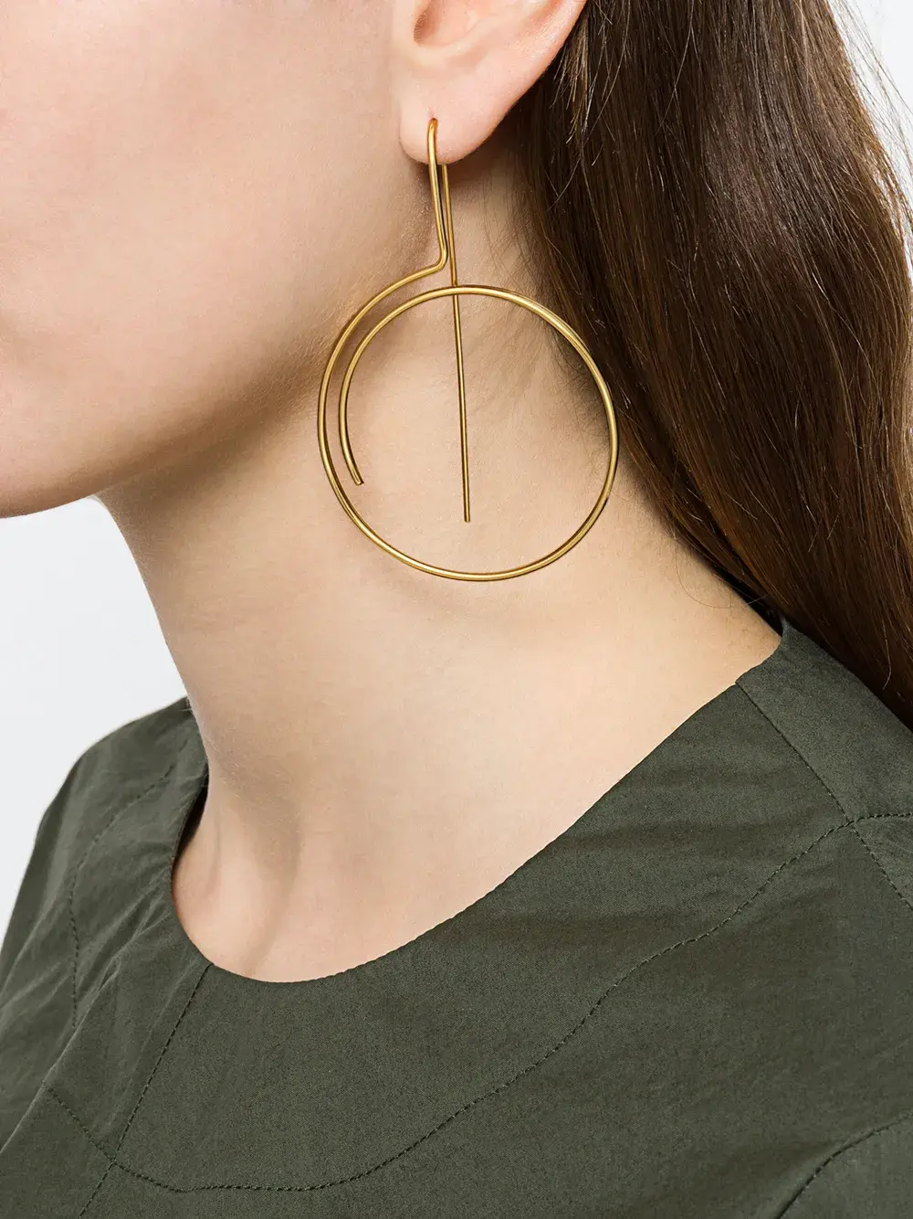 Позолоченная серебряная серьга 'Technofossils Curve' от Wouters & Hendrix. Застежка на крючок, вручную изогнутый дизайн. Пожалуйста, обратите внимание, что это единичная серьга.