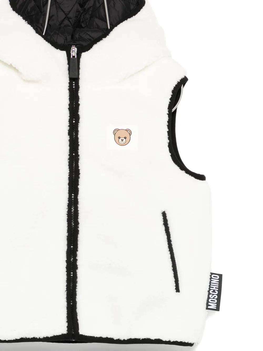 Жилет с капюшоном и логотипом Тедди Moschino Kids, белый
