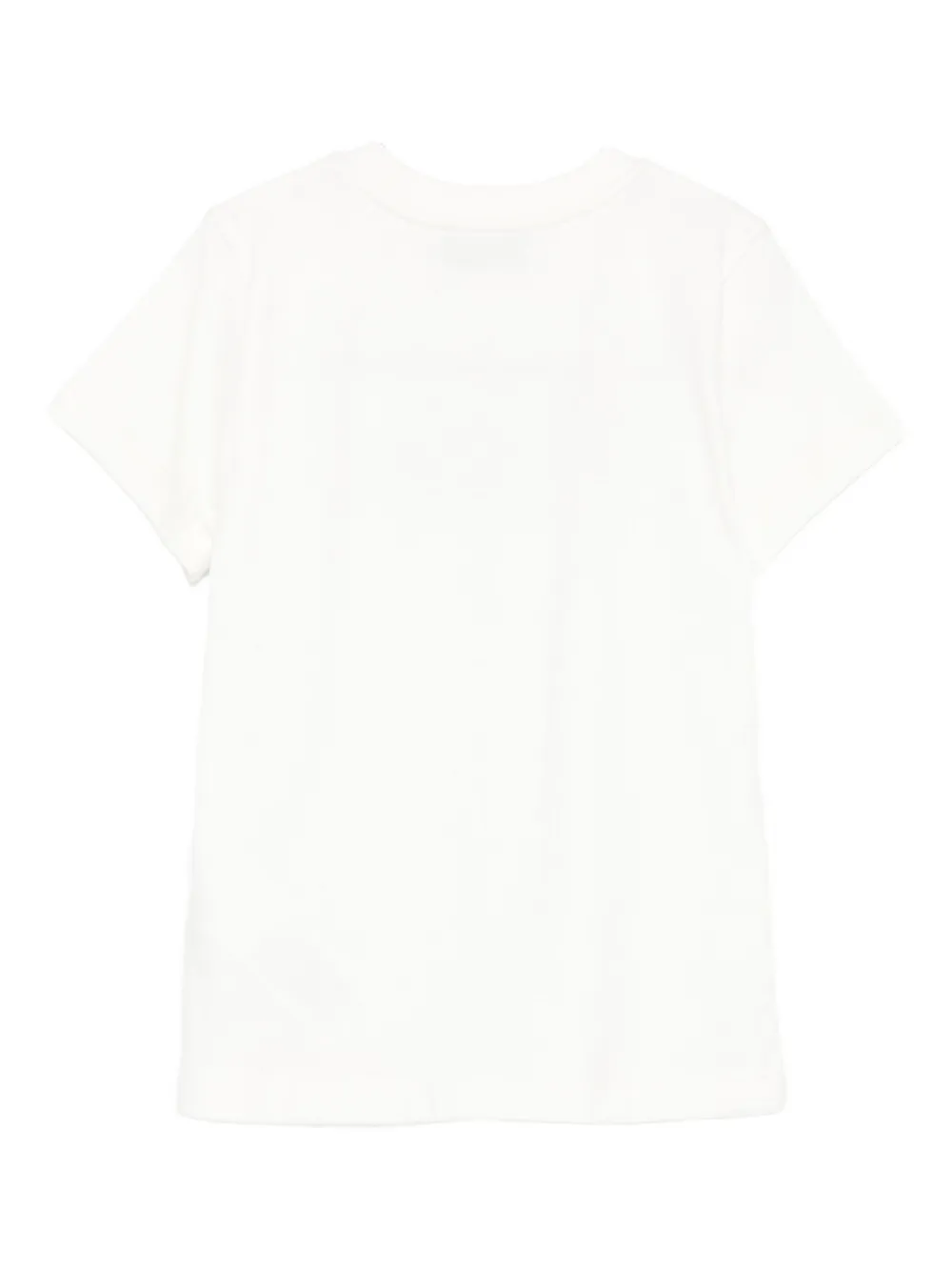 Белый принт с логотипом и принтом плюшевого мишки, короткие рукава, круглый вырез, хлопок