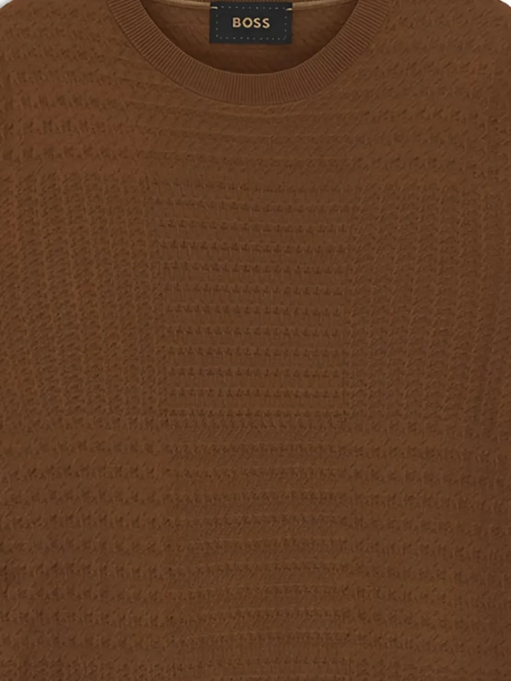 Фактурный свитер с круглым вырезом BOSS, коричневый