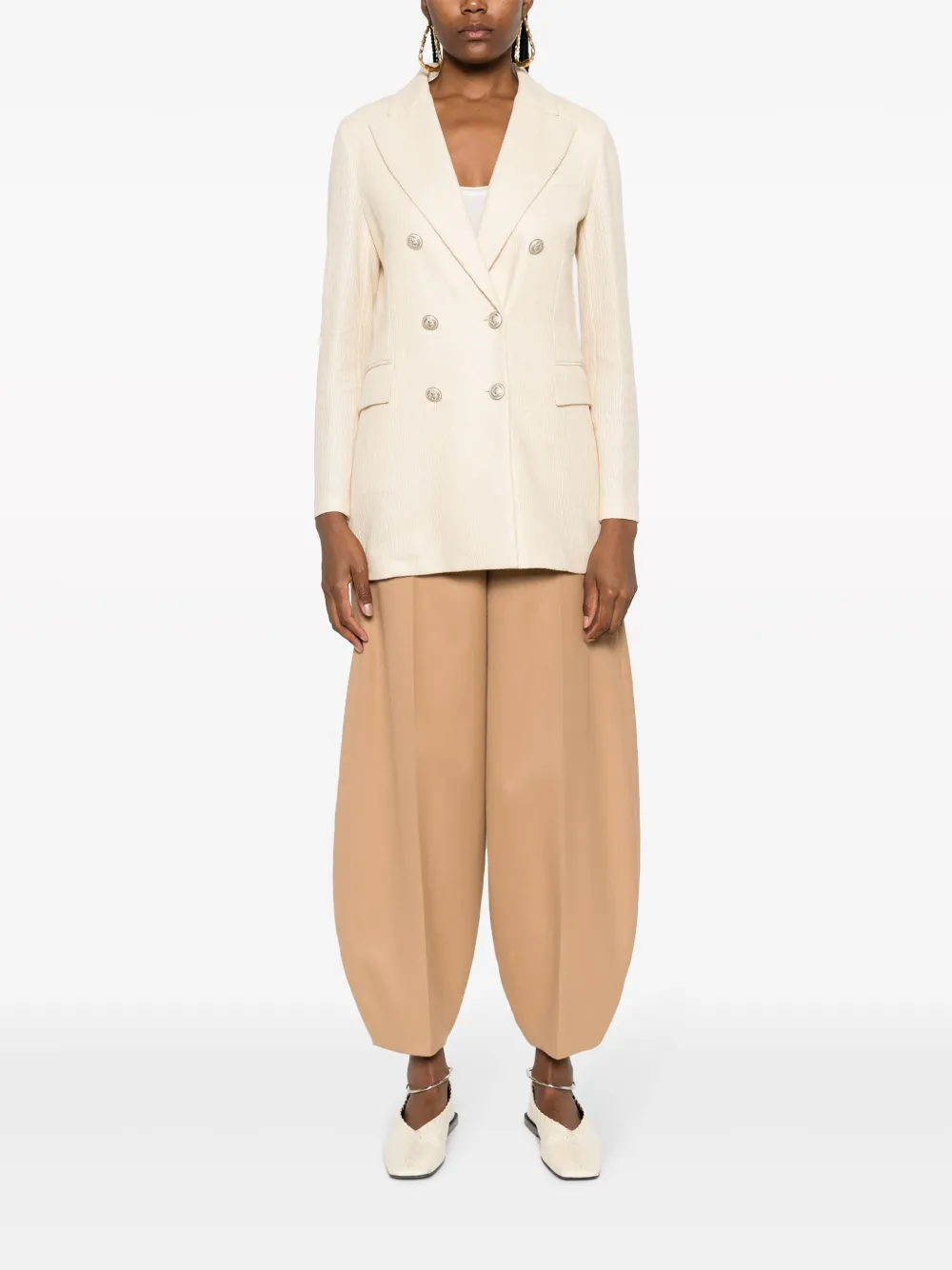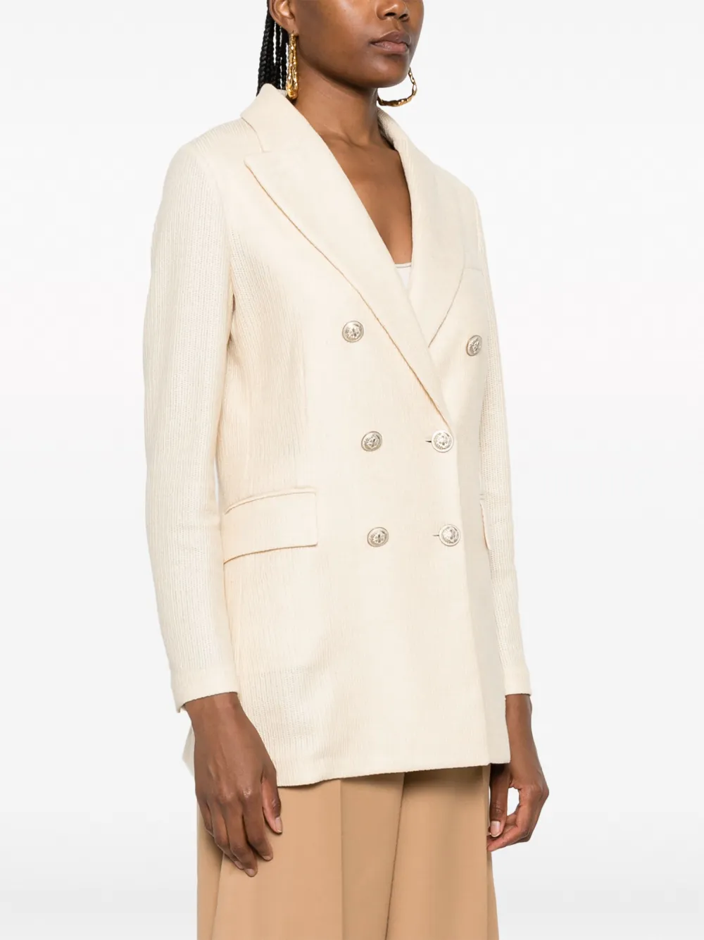 Подробнее о товаре: Бежевый, смесь хлопка и льна, фактурная отделка, заостренные лацканы, двубортная застежка на кнопки, прорезной карман на груди, два передних кармана с клапанами, длинные рукава, рукава с манжетами на пуговицах и прямой подол. Этот товар как минимум на 50% состоит из материалов, которые признаны более безопасными для окружающей среды, и/или произведены с использованием методов, которые помогают сократить потребление воды и химических веществ. Узнать больше о том, какие товары получают отметку «Ответственный выбор», можно из материала «Как мы оцениваем экологичность и этичность».