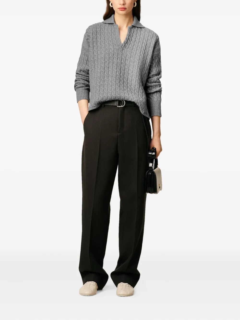 Свитер фактурной вязки AMI Paris, серый