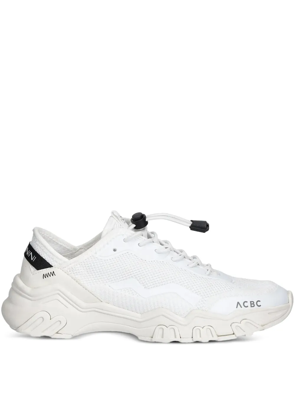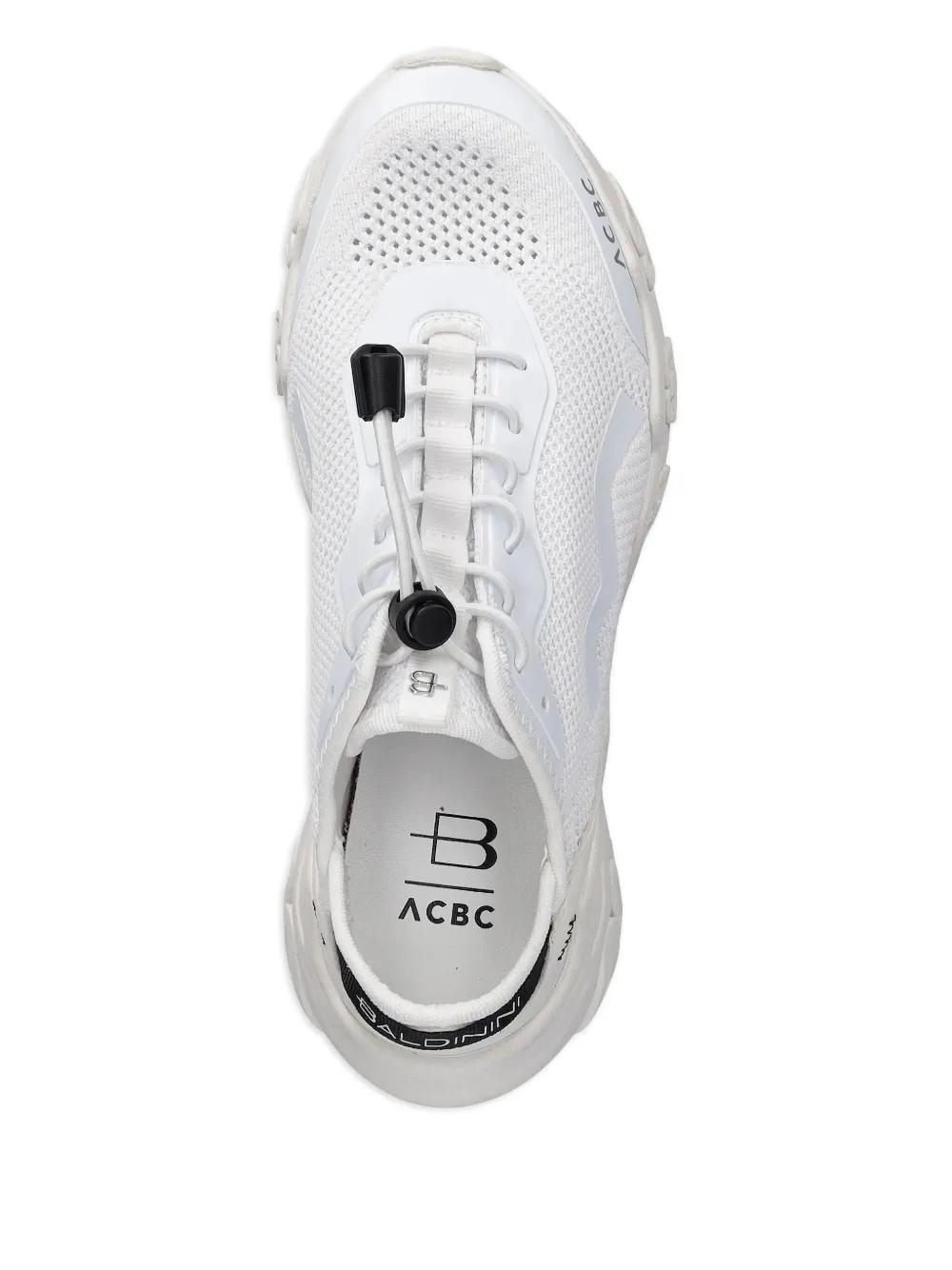Белый дышащий верх со шнуровкой, массивная резиновая подошва, язычок для застежки