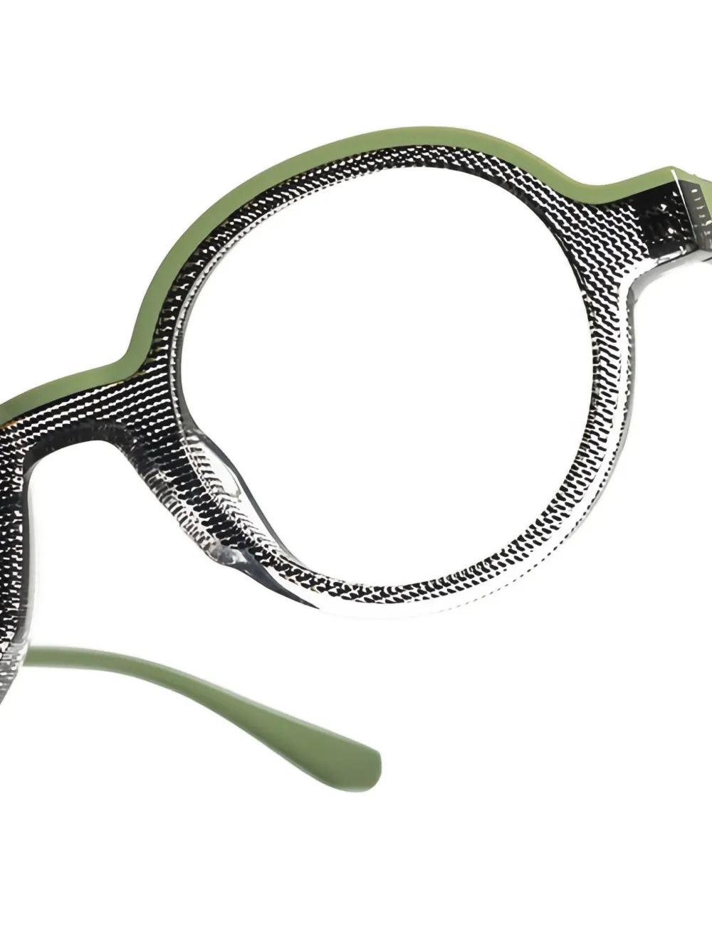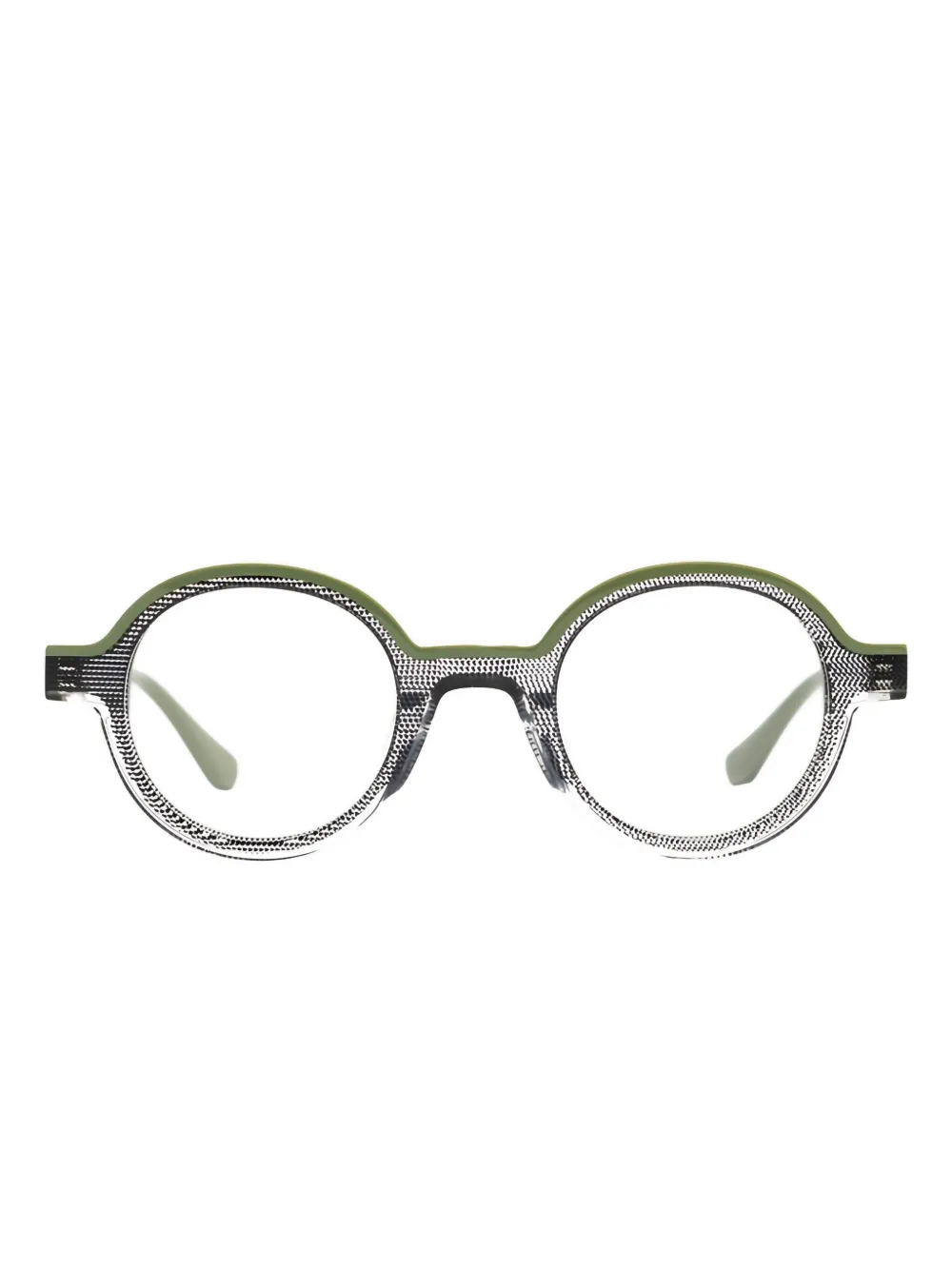 Круглая оправа оливково-зелёного цвета с текстурированной отделкой, прозрачные линзы. Эти очки поставляются с защитным футляром. Все очки FARFETCH продаются без диоптрий.