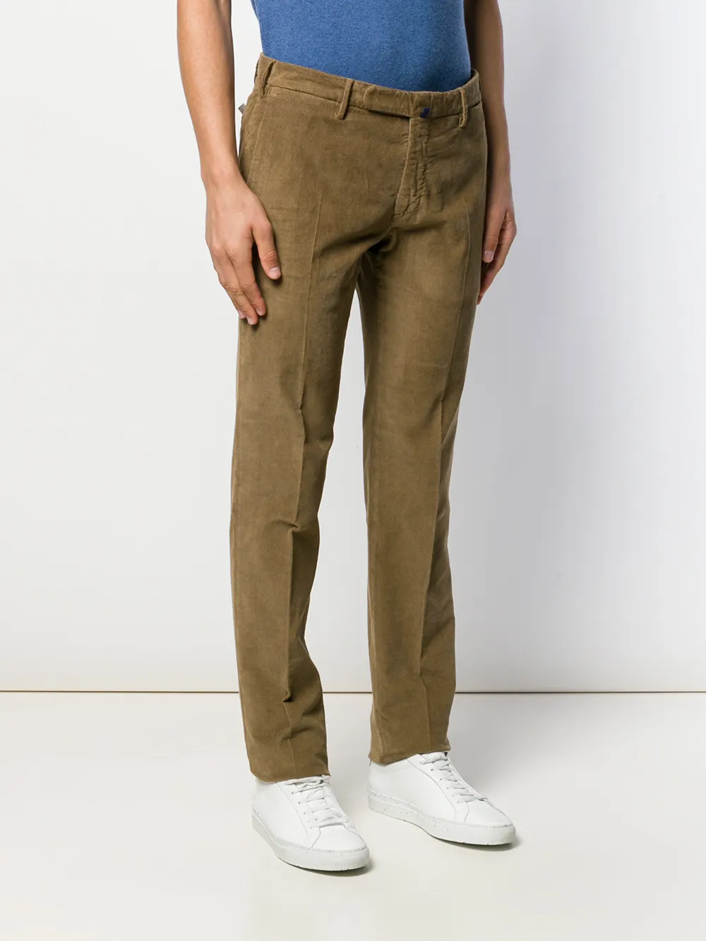 Фактурные брюки прямого кроя от Incotex. Удлиненная модель, фактурная модель, застежка на пуговице и молнии, пояс с петлями для ремня и два передних кармана. Цвет: коричневый.