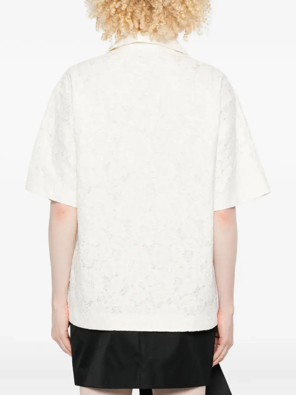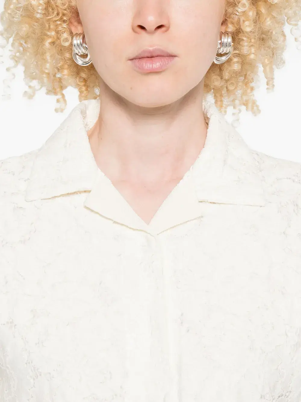 Кремовый, короткие рукава, короткая застежка на пуговицы спереди, текстурированный