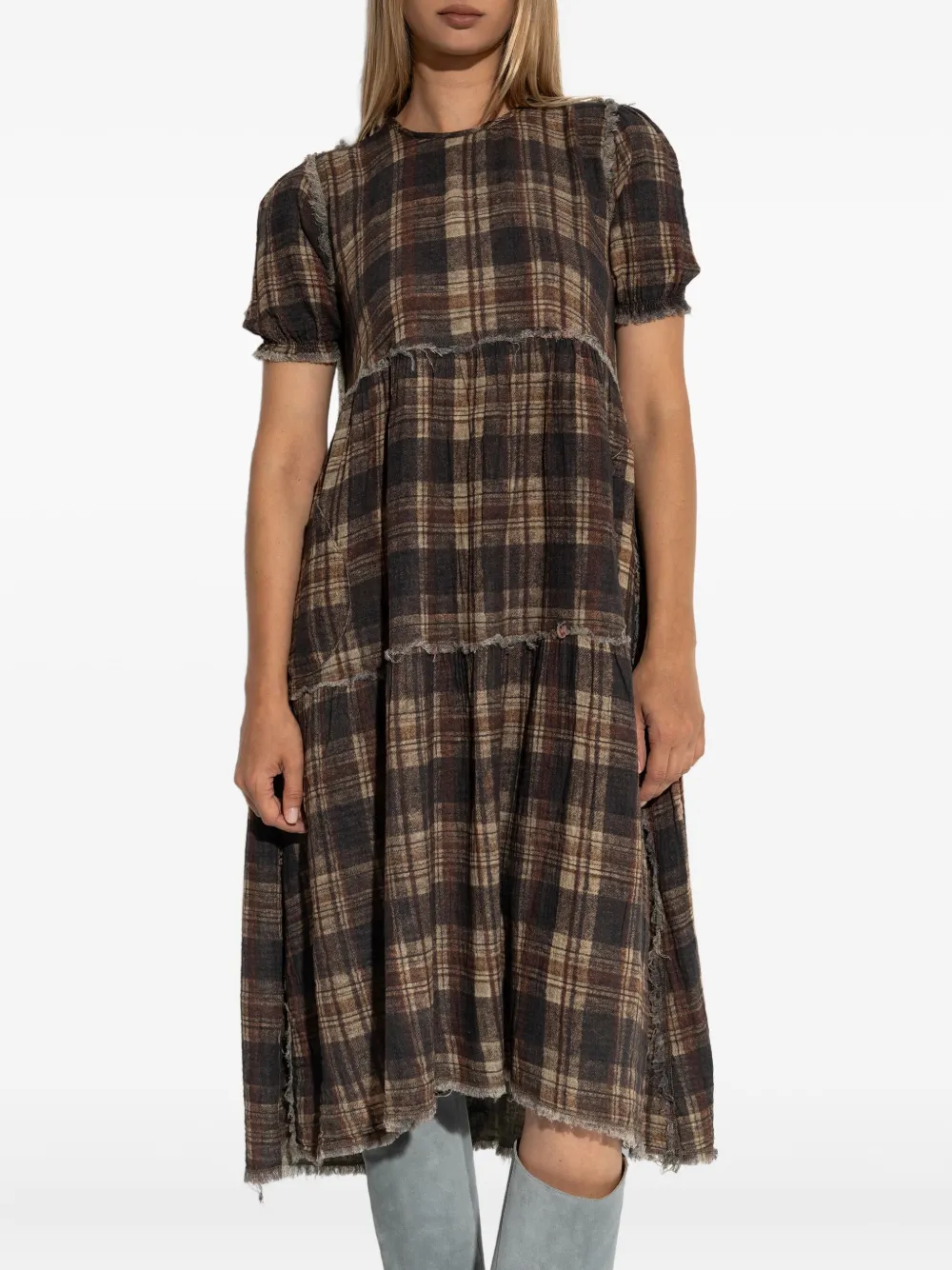 Платье в многоярусную клетку R13, коричневый