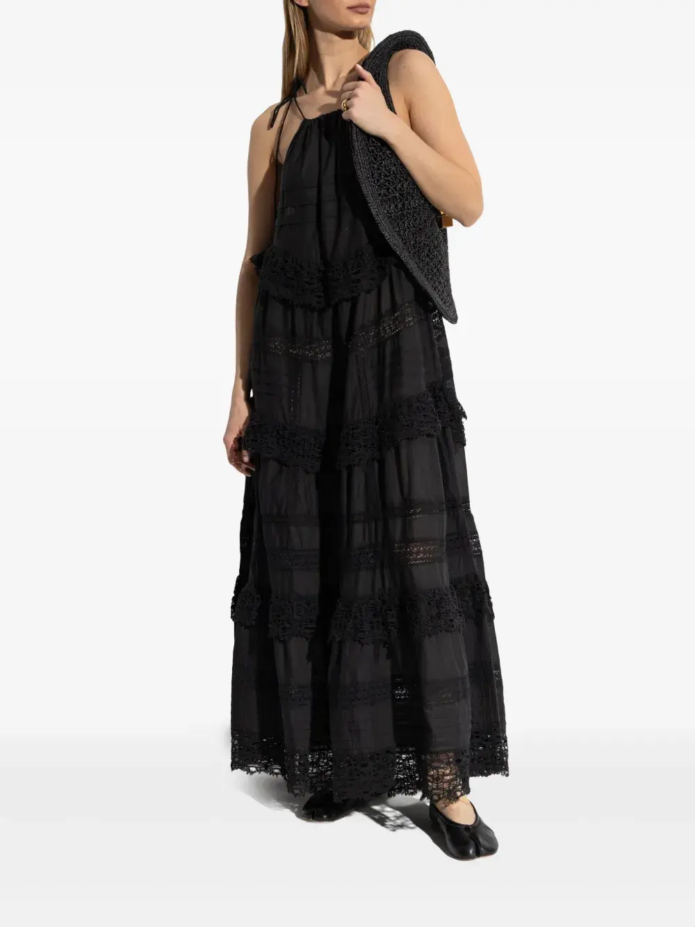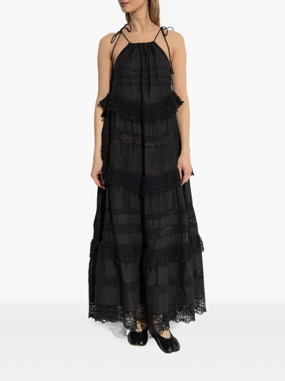 Черный, две регулируемые тонкие бретельки, многослойный дизайн, отделка кружевом