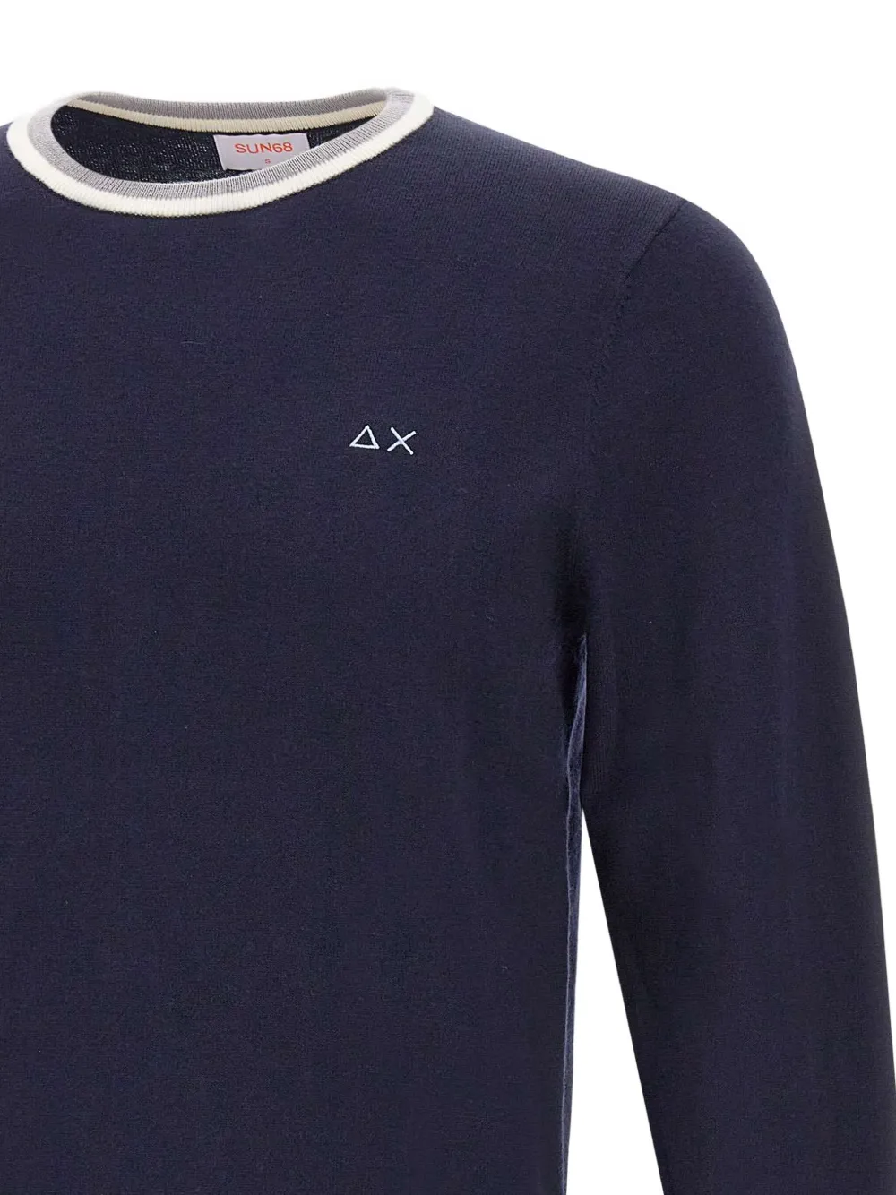 Свитер с круглым вырезом и отделкой Sun68, синий