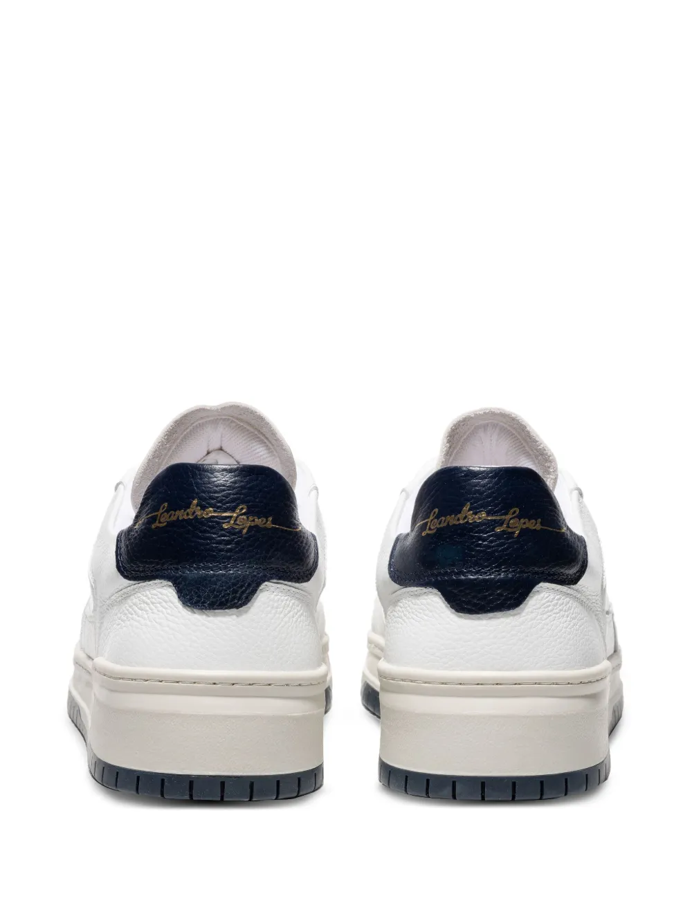 Белый вышитый логотип, темно-синие детали, резиновая подошва, шнуровка.