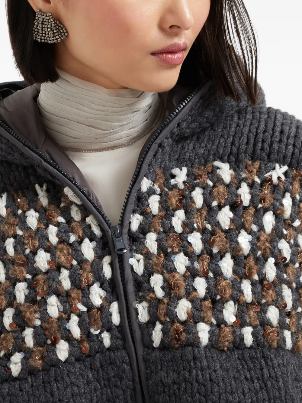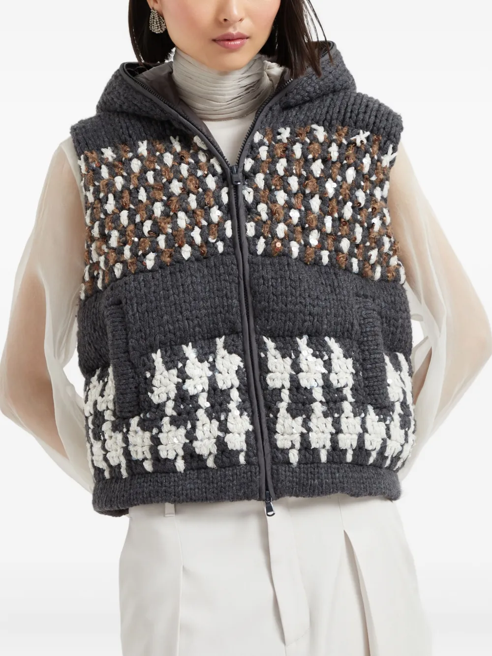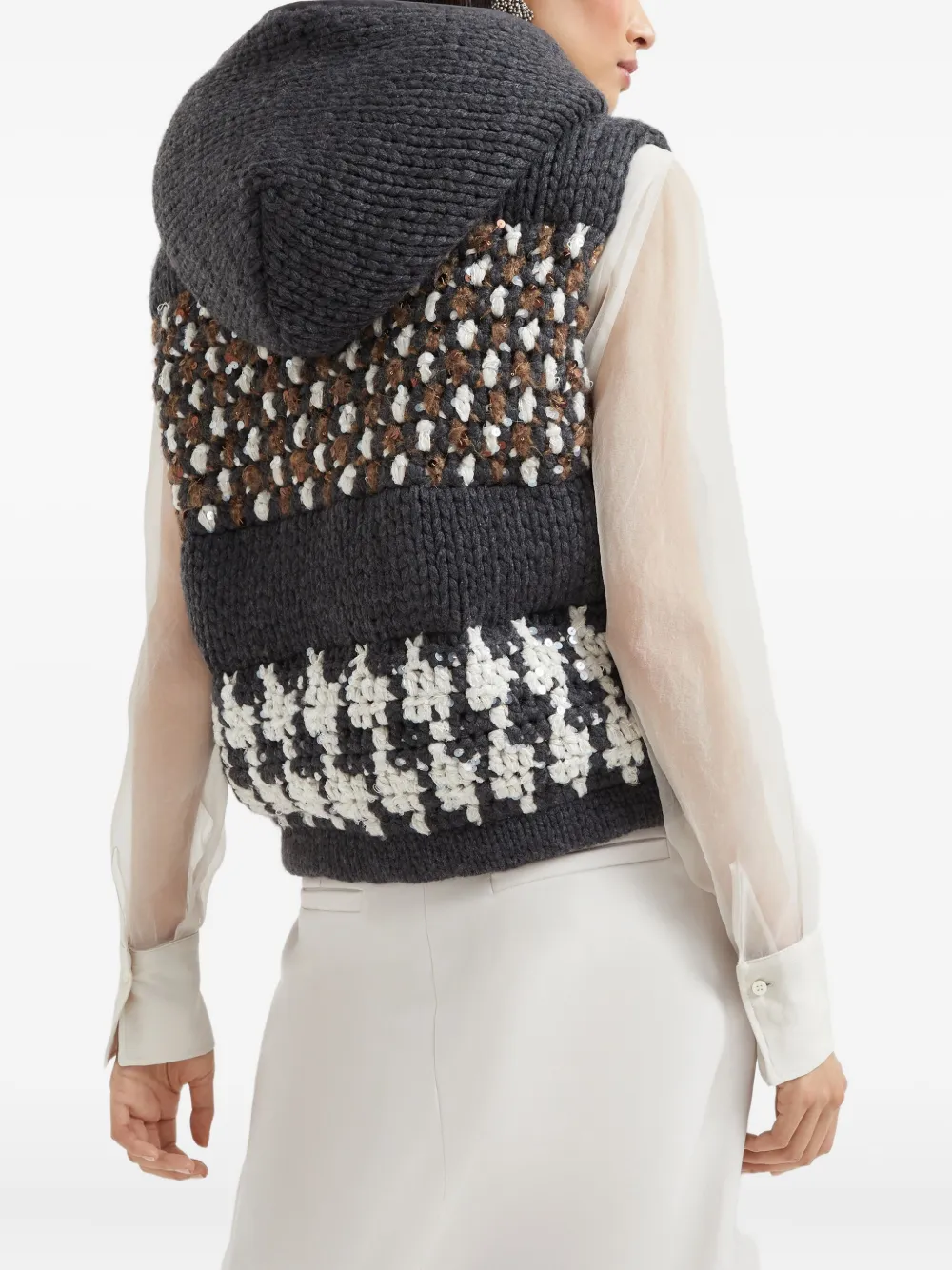 Жилет с капюшоном и пайетками Brunello Cucinelli, серый