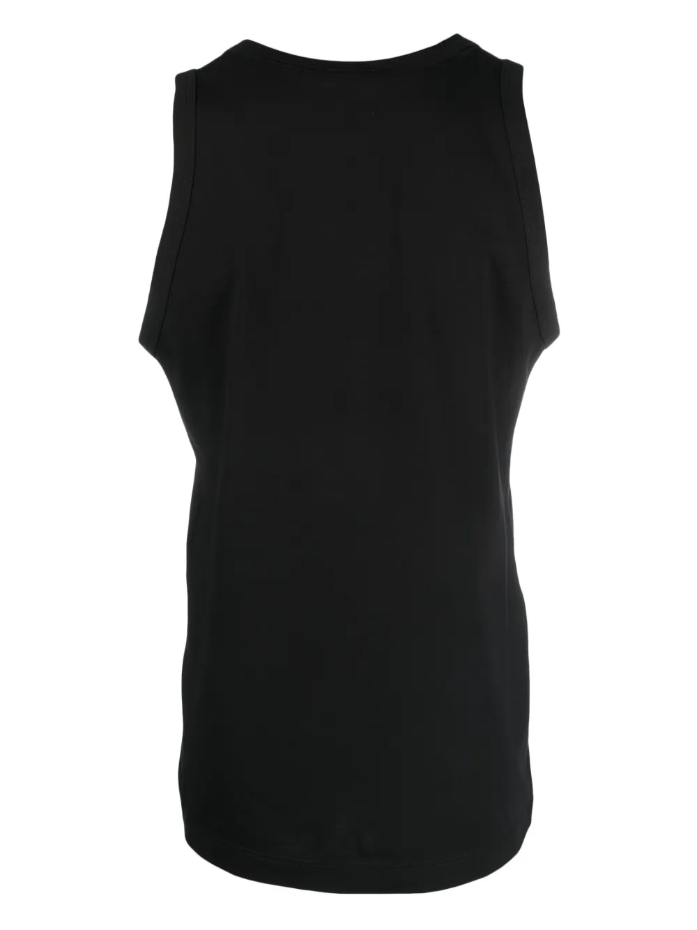 Черный, эластичный хлопок, нашивка с логотипом спереди, круглый вырез, без рукавов и прямой подол.