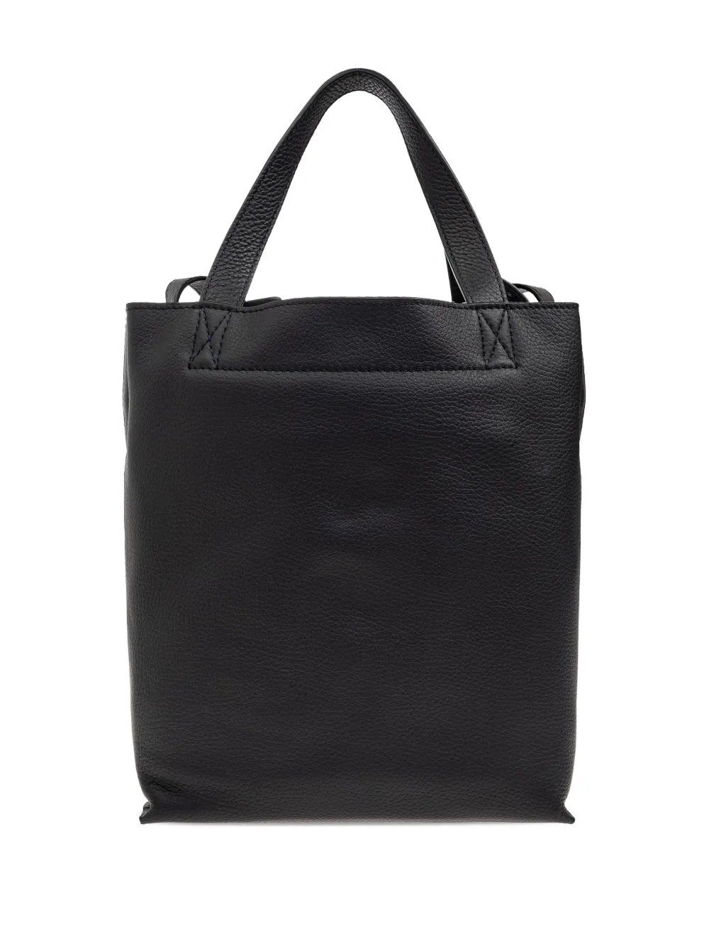 Две ручки из черной телячьей кожи, съемный ремешок, прошитые детали, серебристый логотип